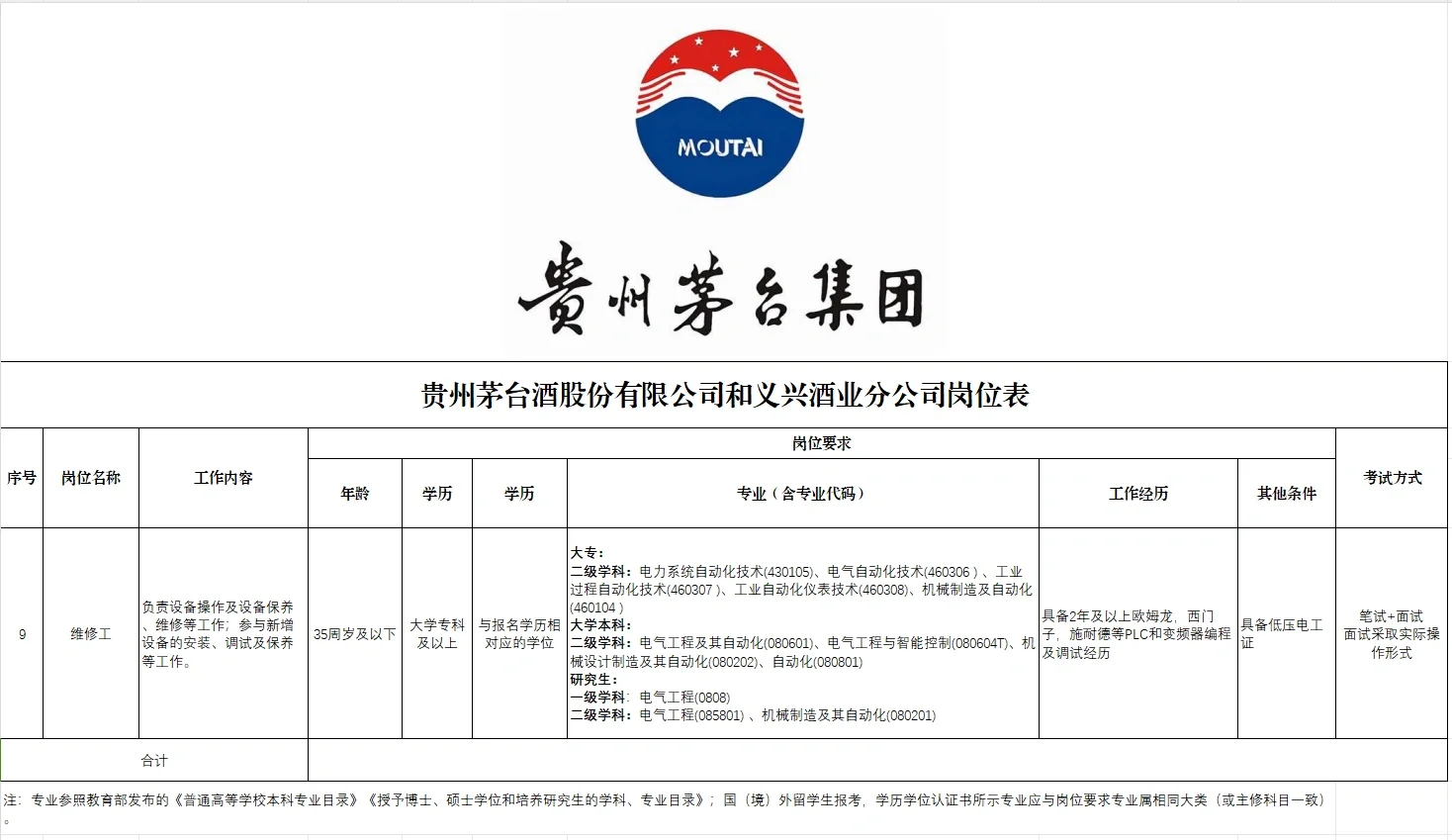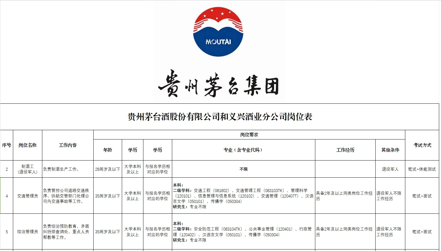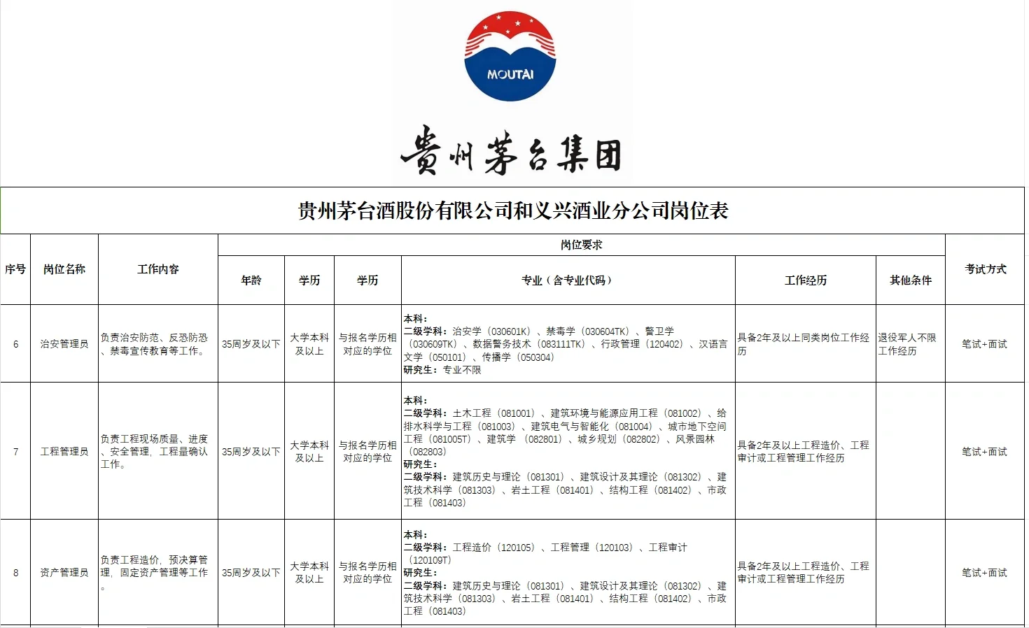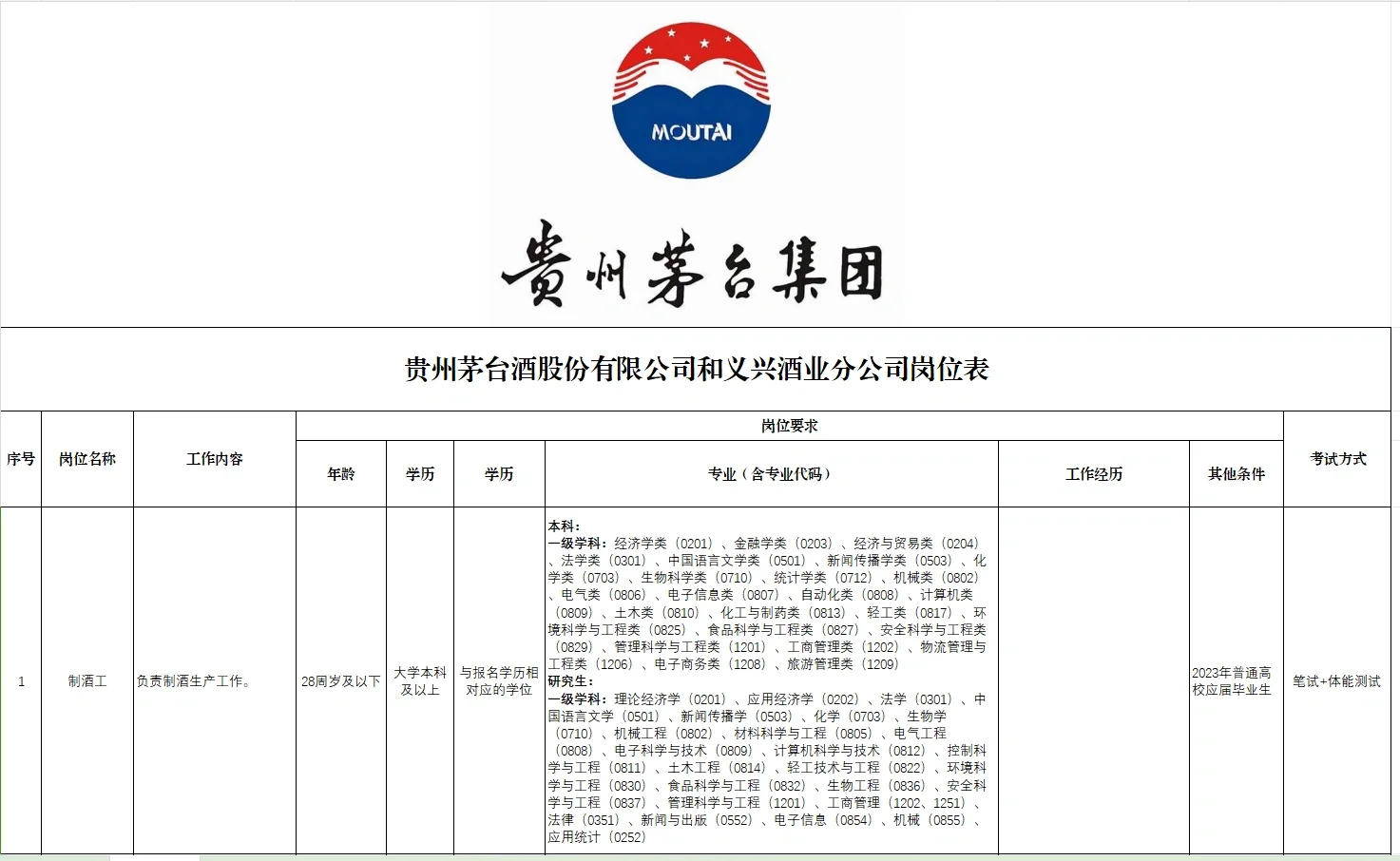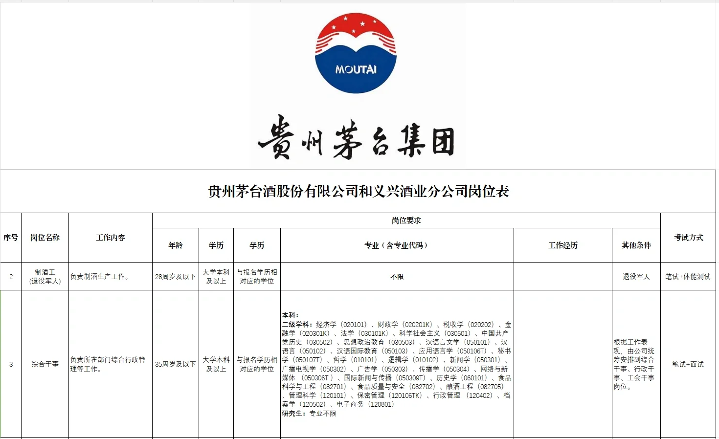 附:茅台集团及支公司招聘预告