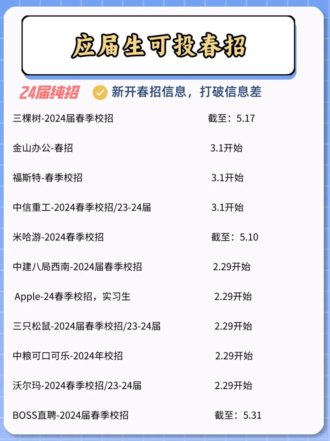 作为应届生,大家一定要珍惜自己的身份,春招确实是我们最后的投递机会了。所以,大家要抓住这个时机,积极投递和面试,争取找到满意的工作!