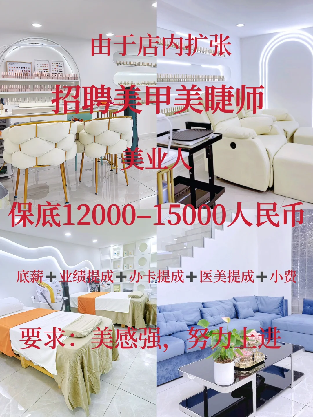 有工作经验,审美好,努力上进,吃苦耐劳者 只要你有能力月入一万五➕很简单 工作环境好 客源稳定 老板人好 有发展空间