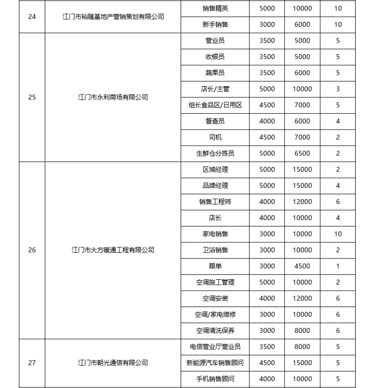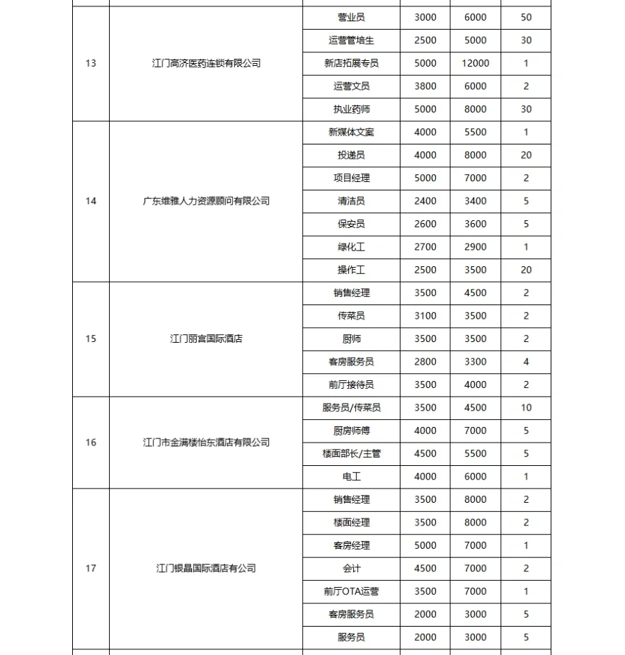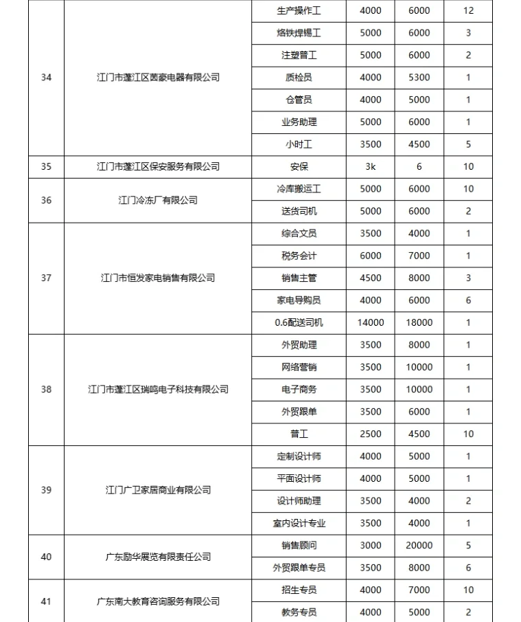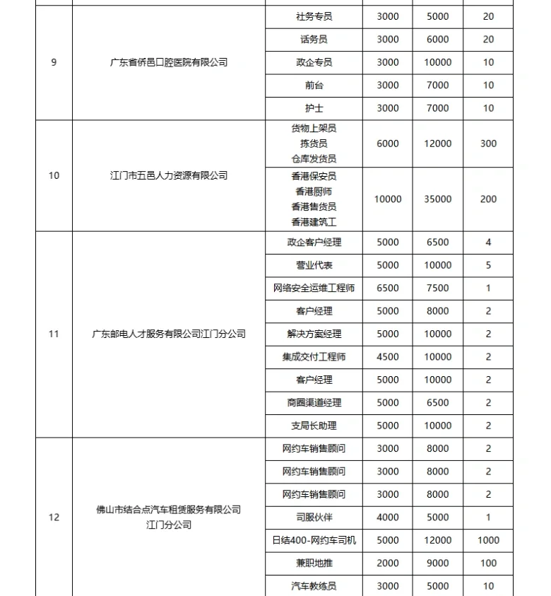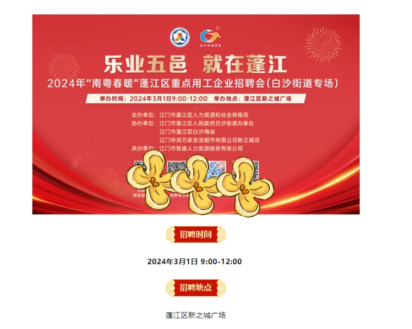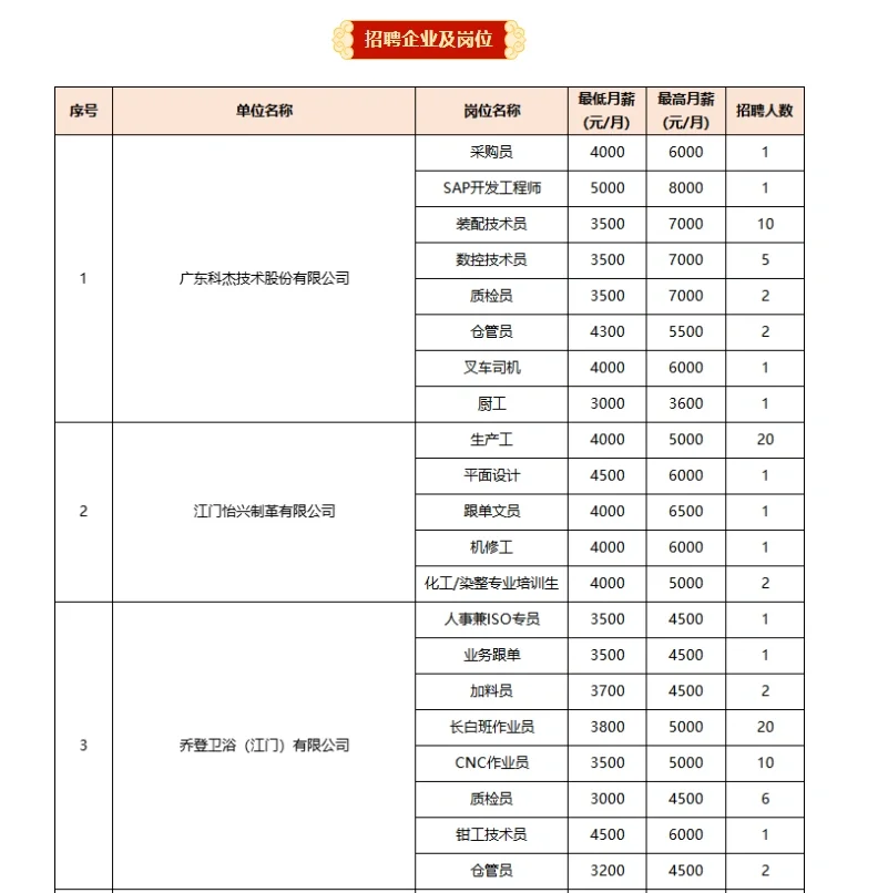 蓬江区找工作,看过来,明天早上招聘会岗位