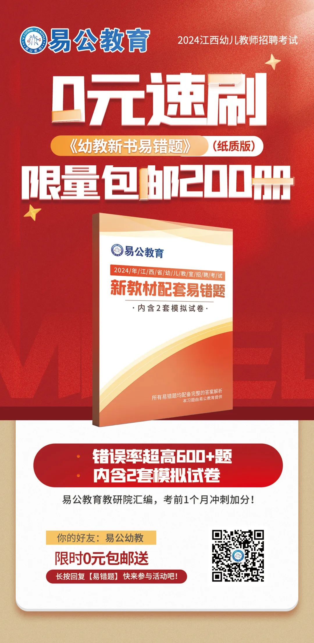 各位教招人注意 根据易易得到的可靠消息 2024年江西教招公告 今天不会出 预计下周内公布 所以大家都别等啦 今天和周末好好睡一觉 下周我们一起迎接正式公告的到来! ↓另外网传消息↓ 教招笔试时间为4月21日?! 别说还真别说! 经易易推测:消息大概率就是真的没跑! 且听易易给大家分析分析! 如果公告下周公布。根据公告比笔试提前1个月公布的原则,4月4日-6日已经赶不上安排笔试了,排除! 4月13日是官方的原定笔试时间,但与英语专八考试撞档。鉴于英语专八考试一生只能考2次、且弃考后再无考试资格的特殊性,以及专八考试对于英语教师们的重要性,原定于4月13日的笔试必然会延期。 而4月14日也受到专八考试的影响,因为大部分外地的专八考生无法及时赶回江西参加教招考试,所以也不宜安排笔试。 所以4月13日-14日也可以排除。 4月20日则是江西专升本考试,和教招考生有大量重合,所以4月20日肯定也无法安排教招笔试。 但专升本考试只考1天 而且4月21日暂无其他考试安排 加上4月27日又太晚 所以2024教招笔试预计在4月21日! 如果江西教招笔试安排在4月21日 ![]() ![]() ![]() ![]() 备考进入倒计时 【幼教新书易错题】 ↓扫码回复【易错题】全部0元送↓ |