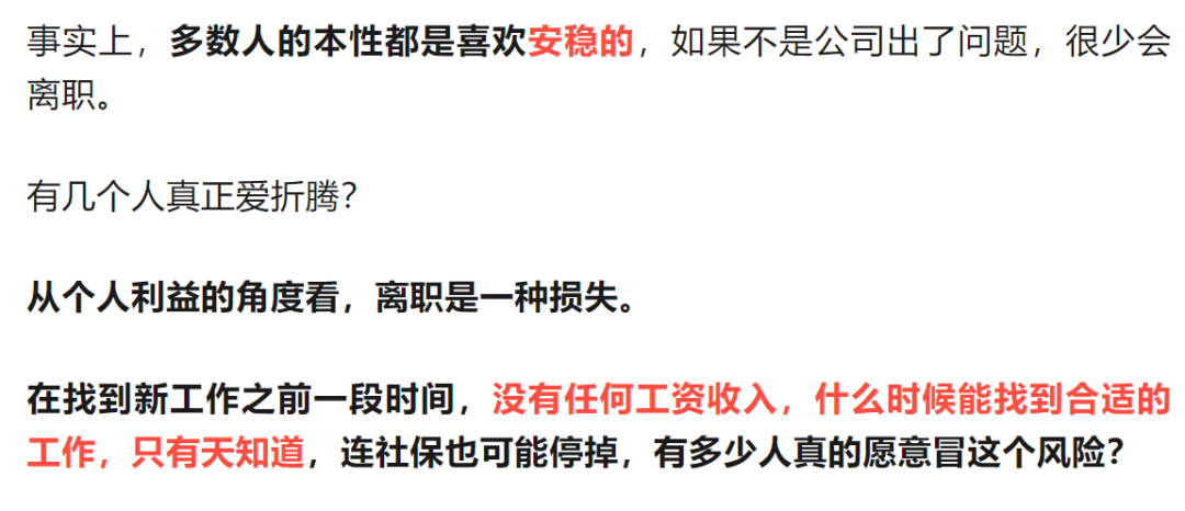 打工人跳槽,真的不能容忍? - HR 在初选简历时,对于在以往公司工作时间较短,有经常跳槽嫌疑的人,总是持怀疑态度。 在一家公司面试,虽然HR认为别的条件都适合,但因为在前两家公司工作时间短,最终没有通过。 可能有一些老板和HR,所以就想替打工人说道说道:经常跳槽,果然是严重的缺陷吗? 以我在北京多年的工作经历,总结出离职跳槽的原因主要有三种: 第一、二两种情况其实比较少见,因为一家公司里,很优秀的员工和很差的员工都是少数。 最常见的其实是第三种情况,就是公司本身有问题,员工实在呆不下去。 比如,我曾经见过一家公司,老板经常克扣员工工资,早已是劳动仲裁委的常客,这家公司的HR自己也天天在背地里骂老板。 然而为了保住那点可怜的工资,这位HR每天还在打电话忽悠人来面试。进入这样的公司上班,谁能做得久? 另外,大多数人都在小微型公司里打工,一般这种公司基本上是九死一生,能挺过两三年的并不多。 抖音上有个专门回收办公家具的人,经常展示他去写字楼收购办公家具的场景,很多公司开业时间不久就倒闭了,不少家具还是全新的。这种散伙式的离职,是员工的错吗? 即使是一些较大公司,也未必能安安稳稳。我就见过一家投资上亿元的公司,运营了几年就出现问题,不得不大规模裁员,这也不是员工的错。 甚至像OFO这样资产上百亿的公司,不是盛极一时后很快崩溃了吗? 基层员工不能左右公司的走势,最终被迫离职,其实是很无辜的。 在现在的社会形势下,公司在招聘时,过于看重过去的跳槽经历,甚至在简历初选时把这项作为过滤人才的标准,这是一个误区,公司老板要考虑一下打工人的艰难和苦衷。老板管你这个? 过于在意跳槽的另一个恶果是,位于头部的优秀人才,也会被排除在外。 人家能跳槽是因为有那个本钱,作为老板和HR,倒是该反向思考一下,如何把这些优秀人才揽入公司,创造好的条件留住人才,让他不跳槽?如果你不这样反思,恐怕公司现有的头部人才,也总有一天远走高飞。 35岁,是一个敏感的年龄。在这个年龄段,有的人已经成为了单位的中坚力量,有的人却还在为找工作或者保住工作而苦恼。为什么35岁后就业会变得困难?是因为用人单位存在年龄歧视,还是因为求职者自身能力不足?本文将从多个角度分析这一现象的成因和影响,并提出一些应对建议。 一、35岁后就业难的现状 据统计,我国劳动年龄人口(16-59岁)已经连续8年下降,到2020年底减少至8.88亿人,占总人口的63.3%。而我国城镇新增就业规模也从2014年的1314万人逐渐下降至2020年的1180万人。这意味着我国就业市场的供需矛盾日益突出,竞争压力不断加大。 在这样的背景下,35岁后的求职者面临着更大的挑战。一方面,他们要和大量的应届毕业生争夺岗位,而用人单位往往更倾向于招聘年轻、学历高、成本低、适应性强的新鲜血液。 另一方面,他们也要和同龄或者更高层次的人才竞争,而用人单位对于这类人才的要求往往更高,不仅要求有丰富的经验和专业技能,还要求有创新能力和管理能力。 据各大求职网站的招聘信息统计,大多数岗位都有年龄限制,而且都明确为35岁甚至30岁以下。尤其是在互联网、金融、教育等行业,员工平均年龄普遍偏低。即使是公务员考录3等公开招聘岗位,也多以35岁为上限。可以说,35岁已经成为了求职者难以逾越的年龄门槛。 二、35岁后就业难的原因 造成35岁后就业难的原因是多方面的,既有客观因素也有主观因素。从客观因素来看,主要有以下几个方面: (1)经济结构调整和产业升级导致部分行业和岗位萎缩或消失。随着我国经济由高速增长转向高质量发展,一些传统行业和低端制造业受到冲击,部分企业倒闭或裁员。同时,新兴产业和高端服务业快速发展,对人才的需求结构发生变化,对技术水平、创新能力、学习能力等方面提出更高要求。这就导致了一些中高龄求职者的知识结构和技能结构与市场需求不匹配,难以找到合适的岗位。 (2)用人单位存在年龄歧视和刻板印象。一些用人单位认为中高龄求职者身体状况、精理水平、学习能力等方面都不如年轻人,而且更难培养和管理。他们担心中高龄求职者对工作没有激情和动力,不能适应企业文化和团队氛围,不能跟上技术变化和市场变化。因此,在招聘时设置年龄限制或者优先考虑年轻人。 (3)社会环境和舆论氛围对中高龄求职者形成压力。在我国社会传统观念中,“三十而立”“四十不惑”等成语反映了对不同年龄段人生阶段的期待和评价。一般认为到了35岁左右,一个人应该已经有了稳定的工作、收入和家庭,并且有了一定的社会地位和影响力。如果没有达到这样的标准,则会被认为是失败或者落后。这种社会期待和舆论评价给中高龄求职者带来了巨大的心理压力和焦虑感。 三、35岁后就业难的影响和危害 35岁后就业难的现象不仅对个人造成了不利影响,也对社会和经济带来了潜在的危害。具体来说,主要有以下几个方面: (1)影响个人的心理健康和生活质量。35岁后就业难的求职者往往会感到沮丧、焦虑、自卑、无助等负面情绪,甚至出现抑郁、自杀等极端行为。他们的自尊心和自信心受到打击,对未来失去信心和希望。社会保障也受到影响,难以满足自己和家庭的基本生活需要,更不用说实现个人价值和社会贡献了。 (2)影响社会的稳定和和谐。35岁后就业难的求职者往