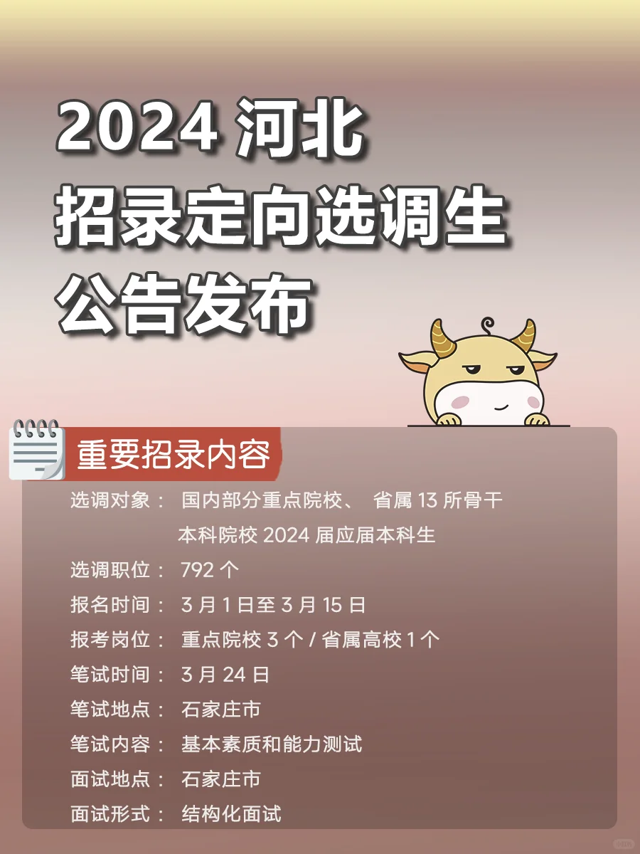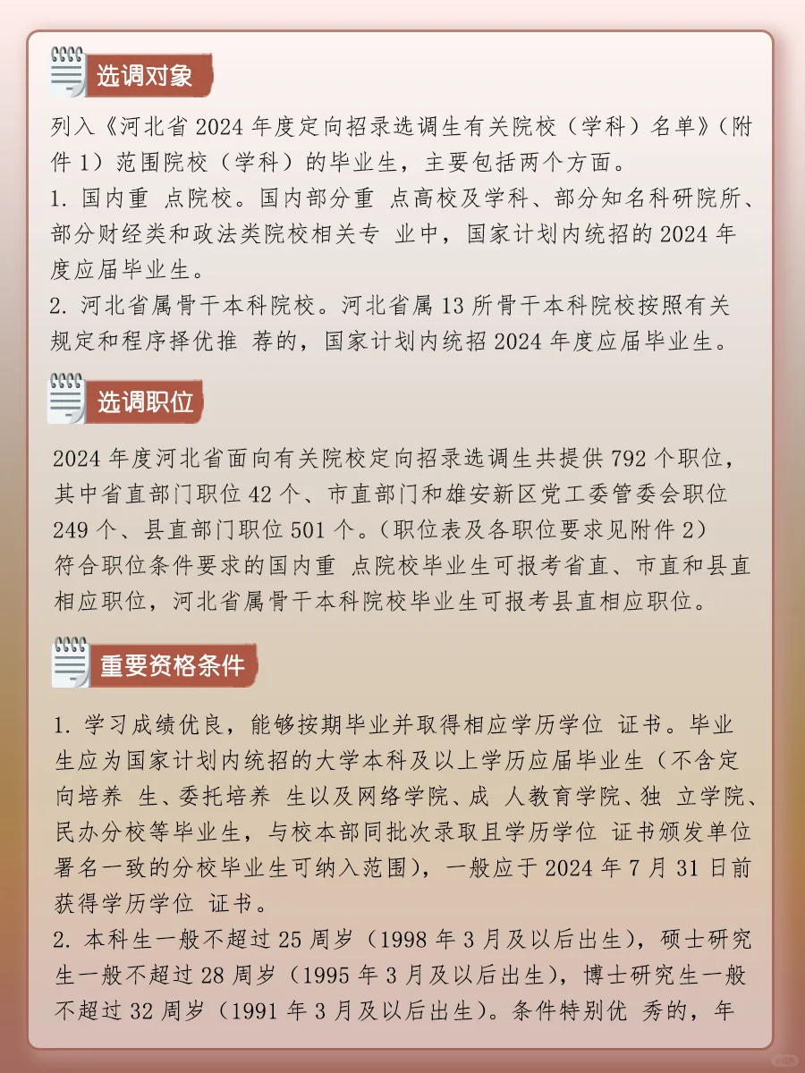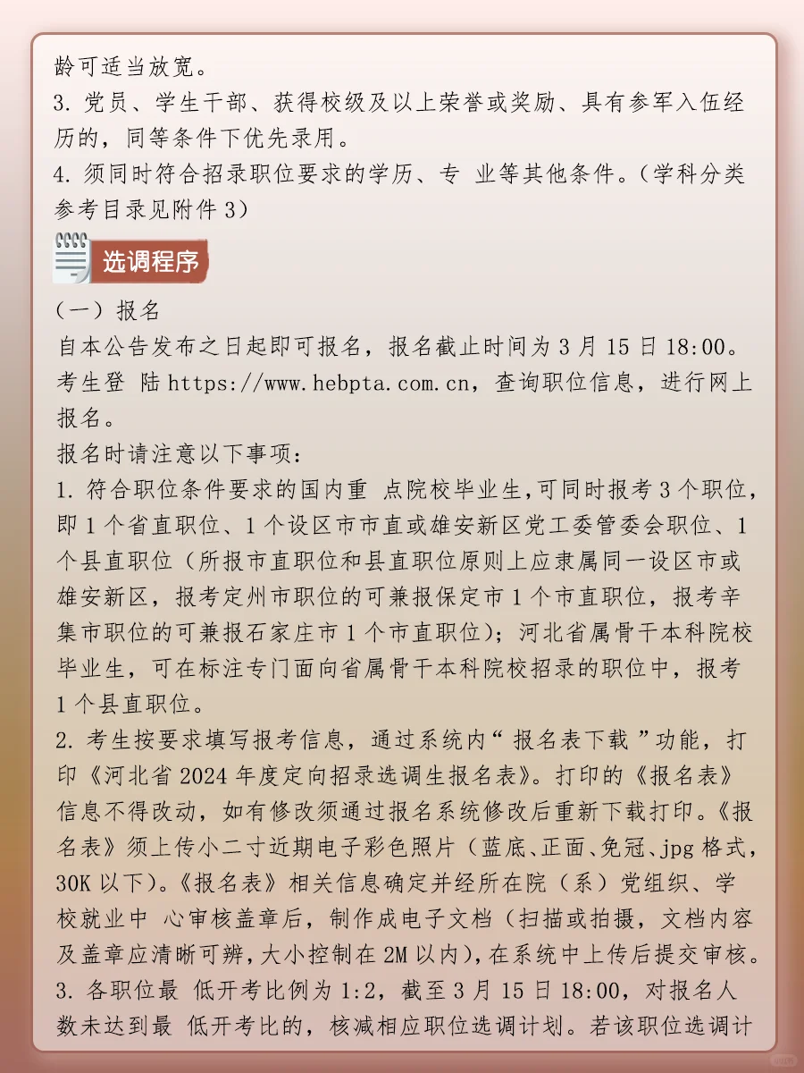 上述为2024河北定向选调招录公告,3月1日开始报名~