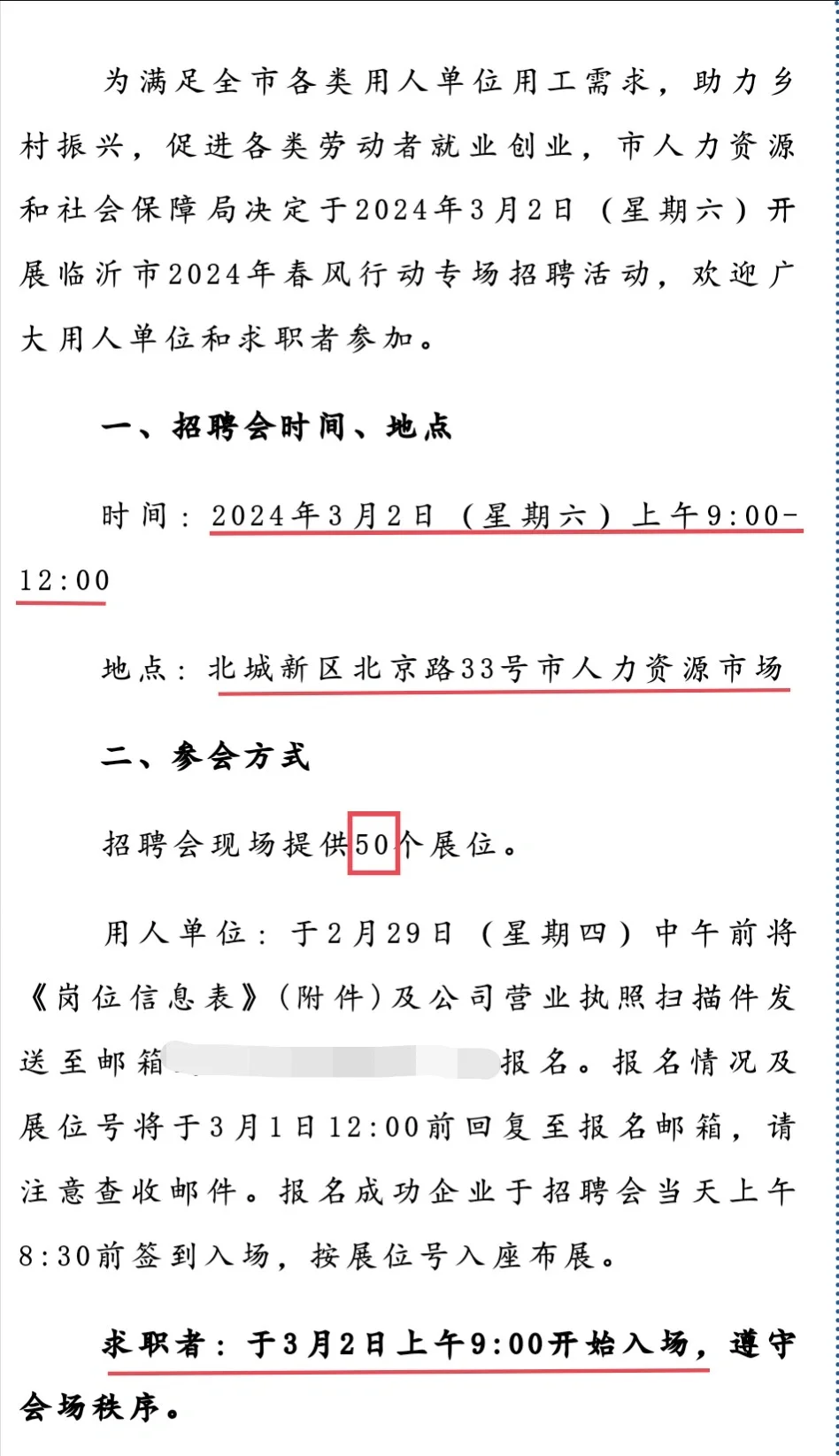 3月2日(本周六)、3月3日(本周日)在北城新区举办两场招聘会,时间地点已在图中标注,具体岗位不详,找工作的友友可以根据时间地点前往参加,如参加还是建议赶早不赶晚