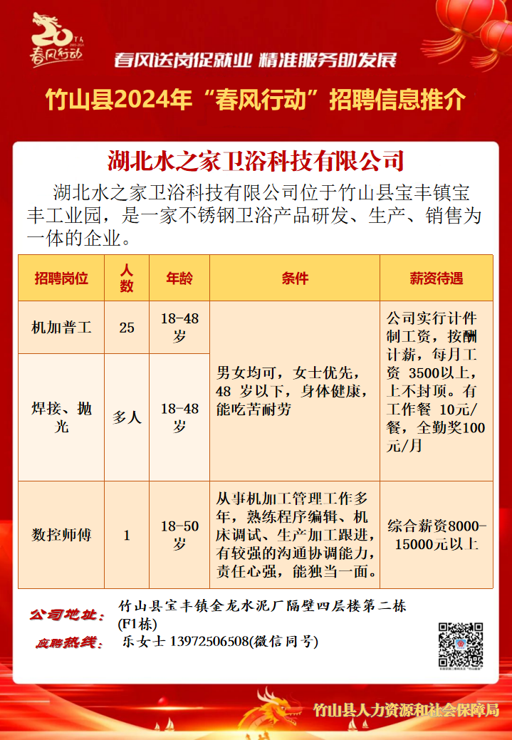 2024年春风行动丨企业招聘信息今日推荐(湖北水之家卫浴科技有限公司)