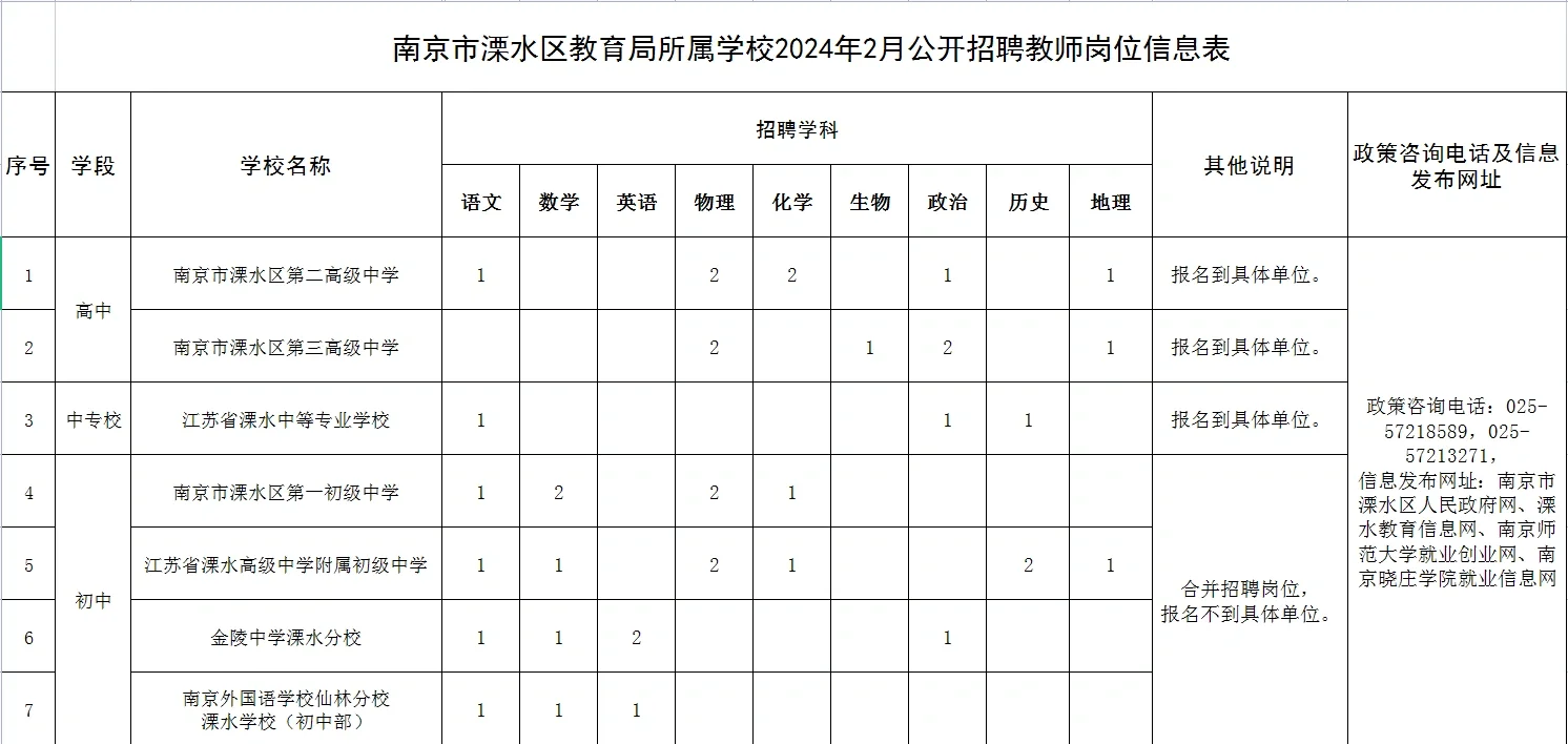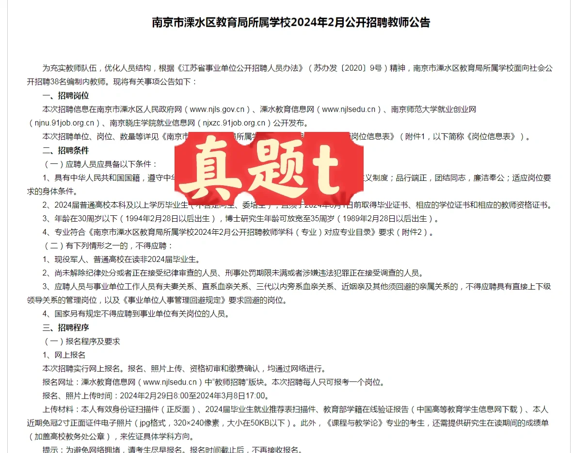 南京市溧水区教育局所属学校2024年2月公开招聘招聘38名编制内教师[派对R]