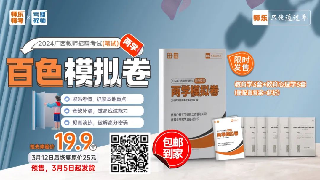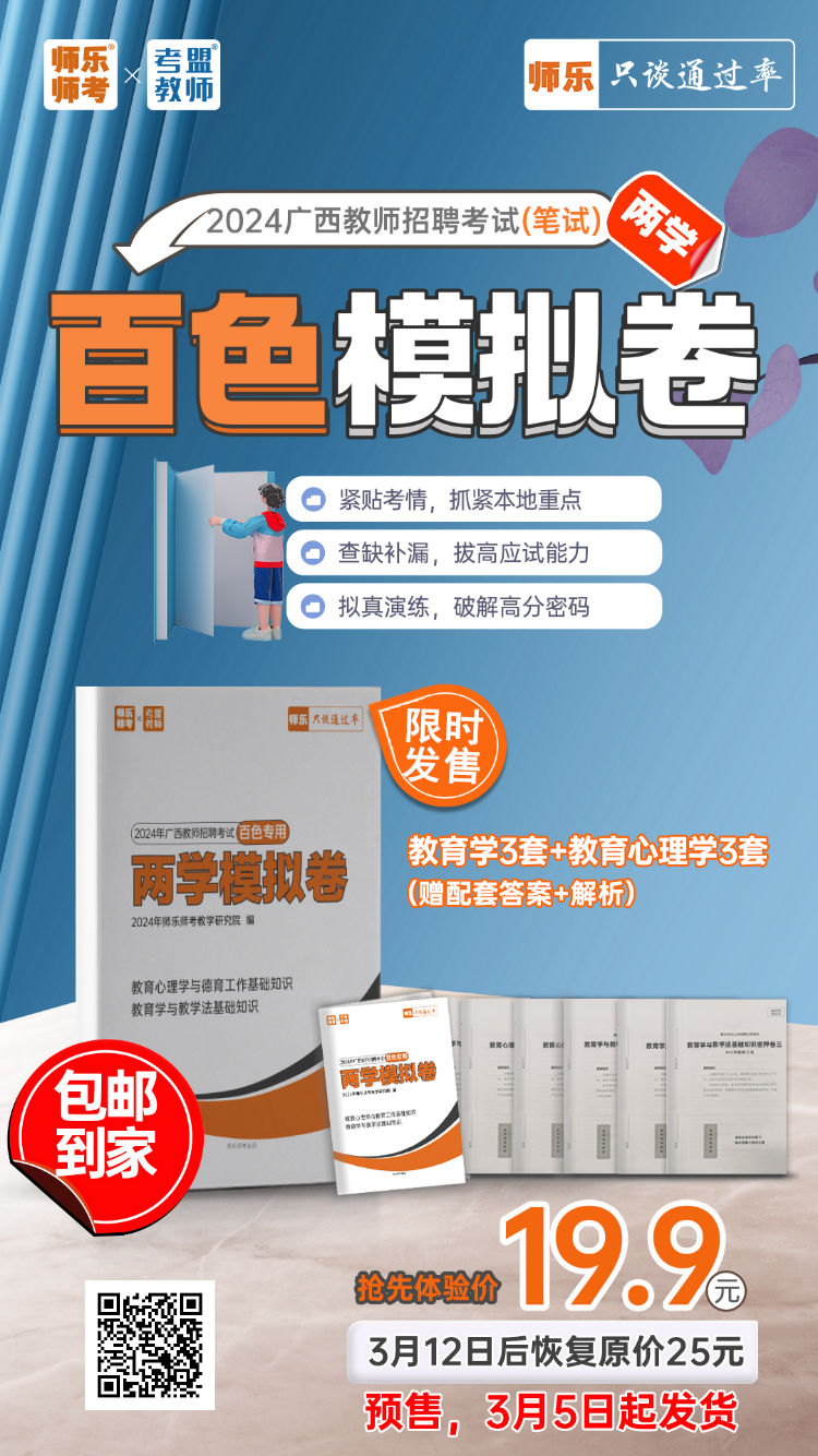 考前一定要多进行几次模拟测验,且一定要严格按照真实考试情况进行,模拟卷的作用有两个:1.知考情,2.掐时间,3.找感觉。贵港、百色中小学教师招聘考试的试卷,题型、题量及分值和其他地市考情不一样,做专属模拟卷,才能把握好每个模块的做题时长,保证整张卷子做完还能有10分钟,等真正上考场时间也能比较宽裕。