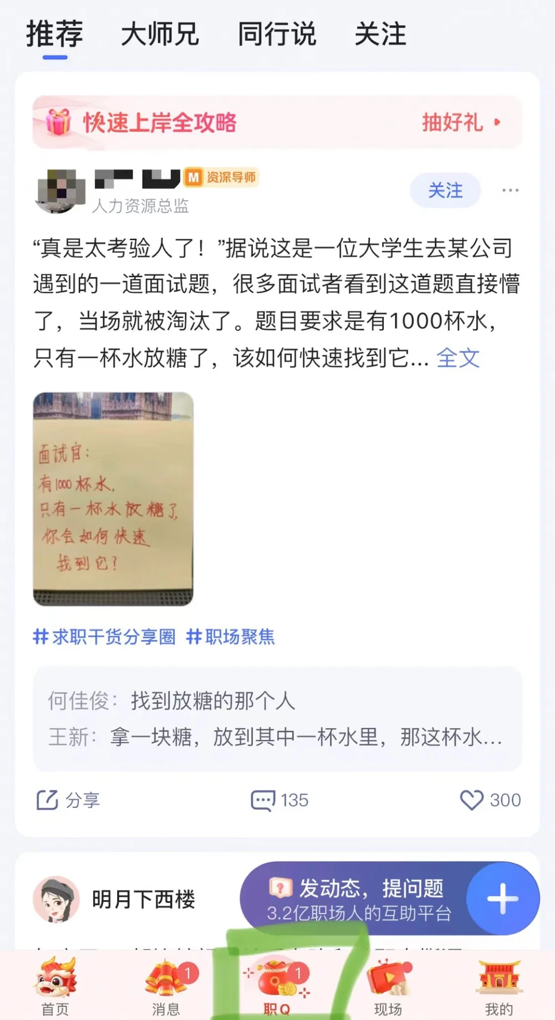[点赞R]同时在职Q社区还能咨询和交流求职经验、工作心得,大大提升求职效率还能少走弯路,值得推荐!