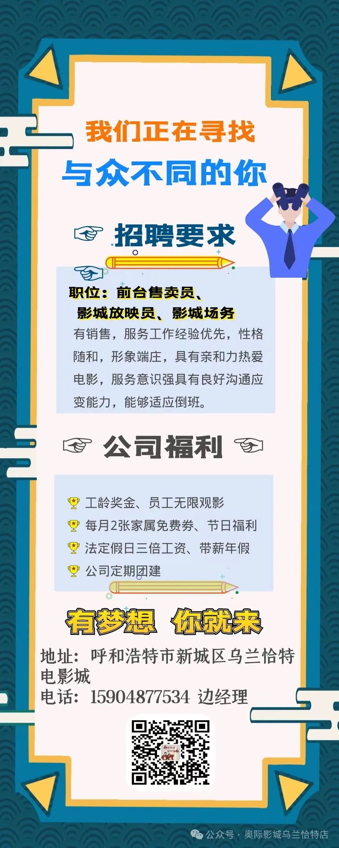 >奥际影城(乌兰恰特店)招人了!!!!