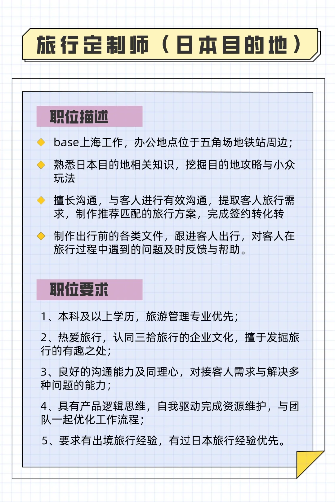 🔴工作岗位:旅行定制师(日本目的地)