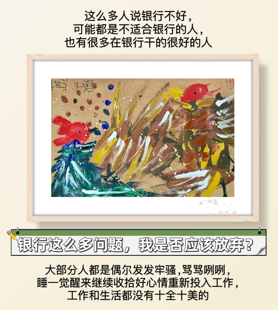 ⏰不同银行不同岗位都会有差异哦。你可以找熟人了解下工作强度,薪资待遇,发展前景什么的。银行整体待遇不错的。这么多人说银行不好,可能都是不适合银行的人,也有很多在银行干的很好的人。大部分人在遇到工作不顺心时总是发发牢骚,骂骂咧咧,睡一觉醒来继续收拾好心情重新投入工作。没有人的工作和生活是十全十美的,所有命运馈赠的礼物都暗中标好了价格。就像一个私信我的新入职银行的小妹妹说的,虽然有各种不好,但是为了银行的薪资福利,她还能再忍忍。每个行业都有对工作满意的,也存在不满意的。编制也一样,很多体制内的人也对自己工作不满意。都是城里城外,需要结合自己的个性追求选择自己的职业。