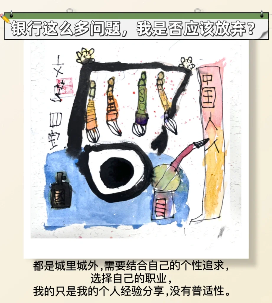👩🏫 👉我想说,这只是我的个人经验分享,银行有它的好与不好,高校事业编也有它的优劣,不能非黑即白地判断。我从银行离职,并不代表银行不好,只是不适合我而已。我觉得高校行政岗不错,也不一定代表高校事业编适合所有的人。每个人需要结合自己的个性追求选择自己的职业,我的只是我个人的经验分享,不具有普适性。