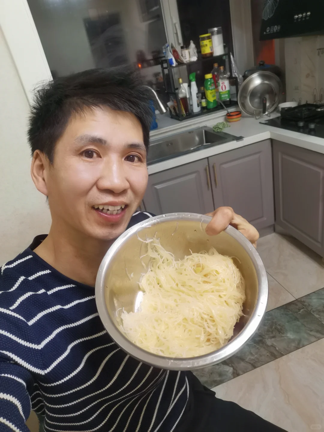 低声的回应:本来是炒菜,后来盐多放了,就加水再后来就………