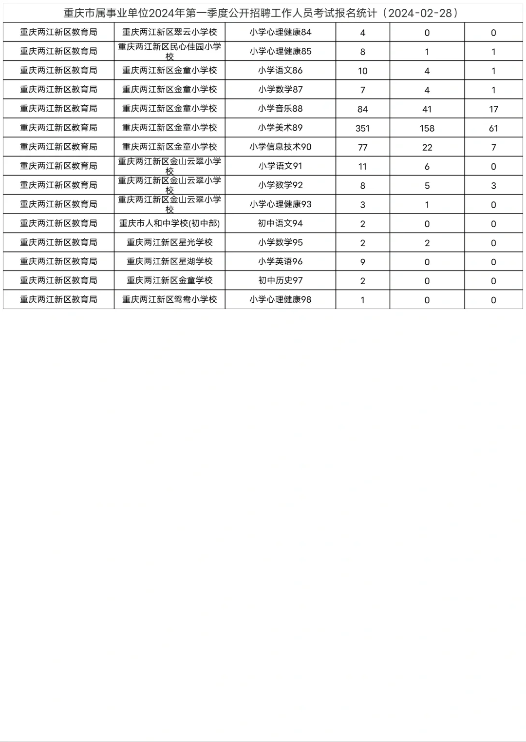 3.重庆两江新区教育局重庆两江新区金童小学,小学美术89,报名人数351