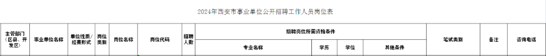 招聘岗位所需的具体条件以《2024年西安市事业单位公开招聘工作人员岗位表》《2024年西安市招募“三支一扶”人员岗位表》(以下简称《岗位表》,见附件1、2)的要求为准。