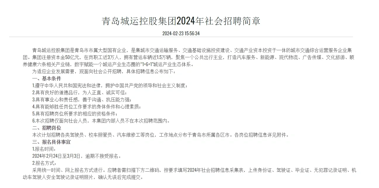 >青岛城运国企招聘