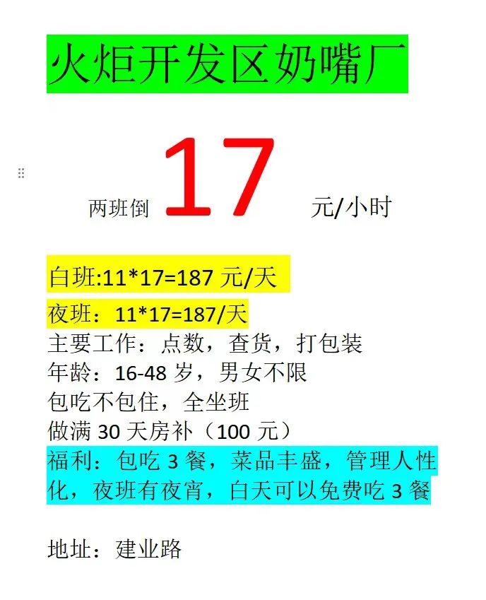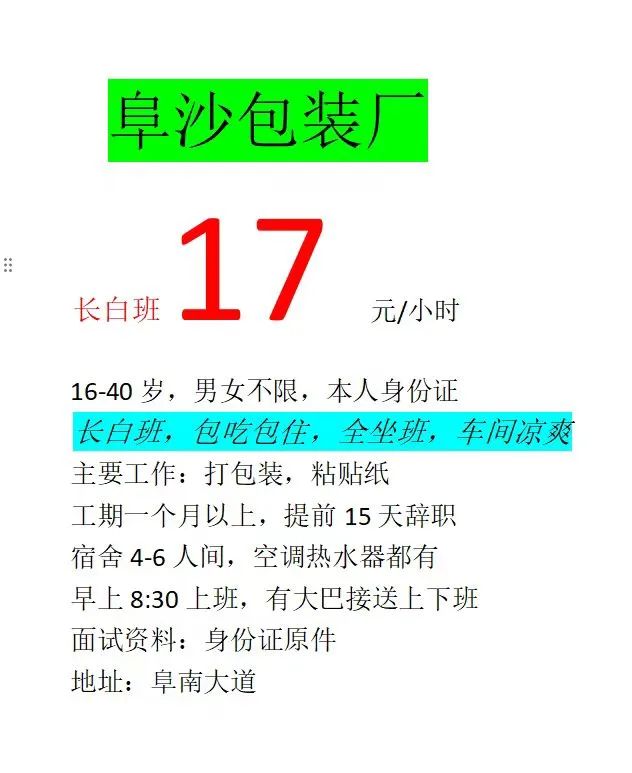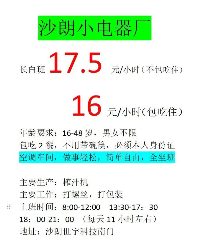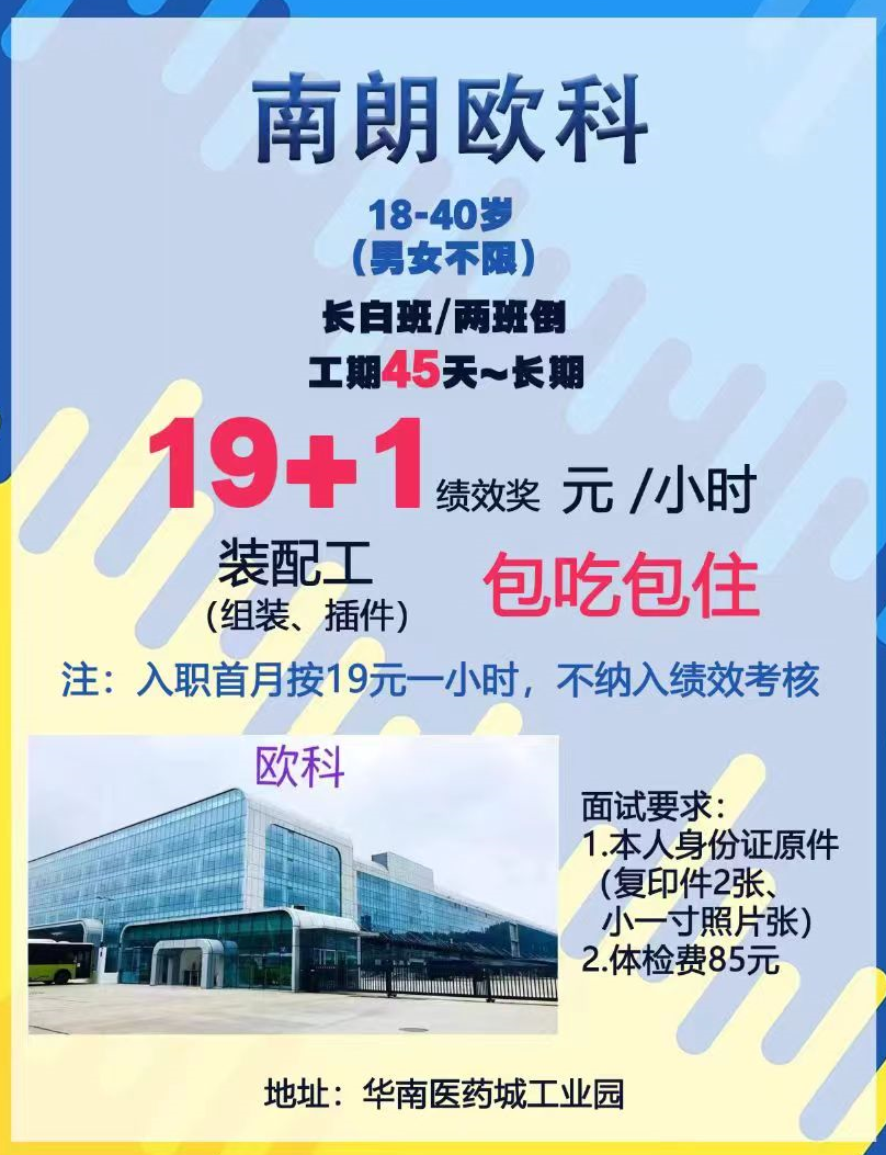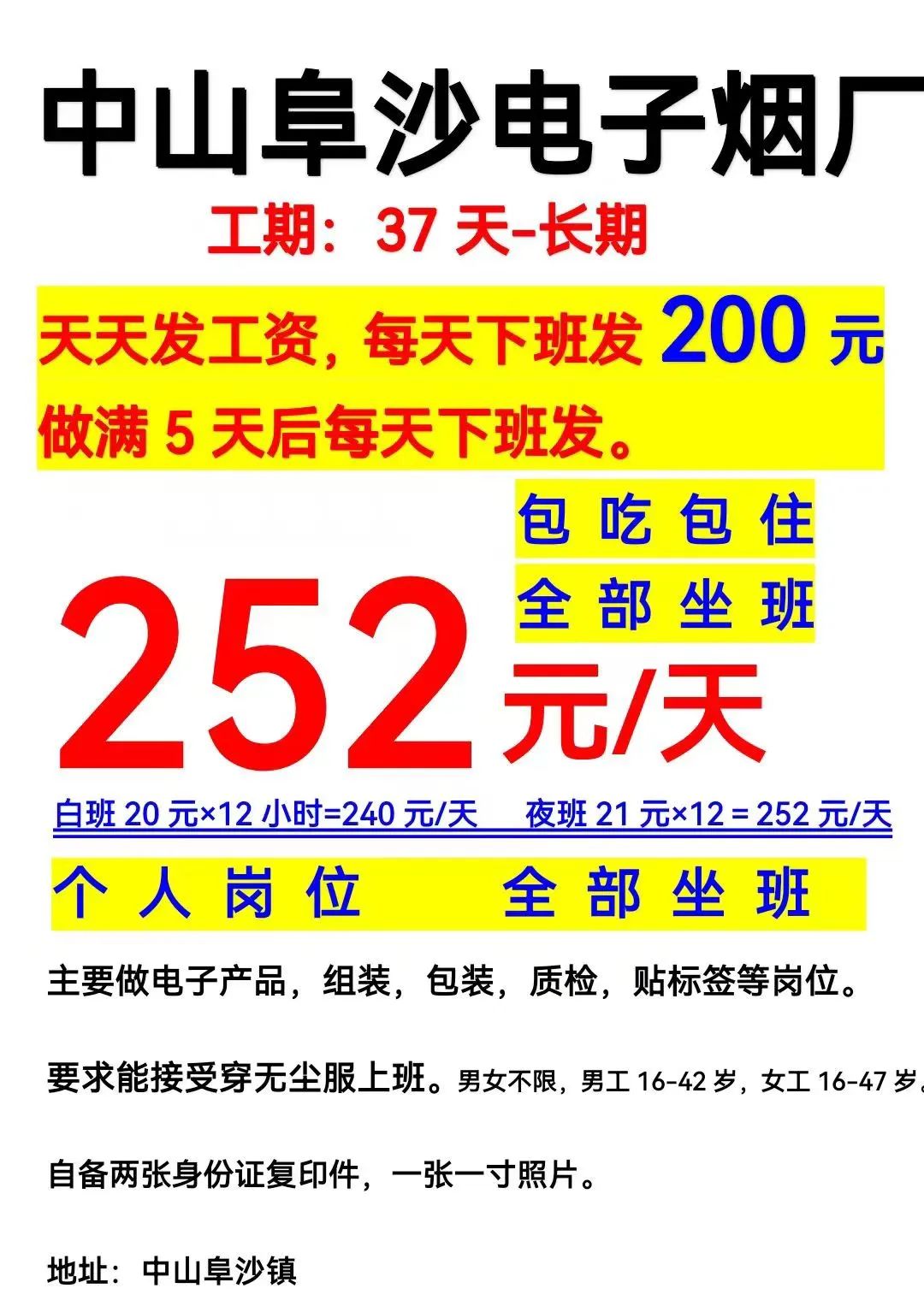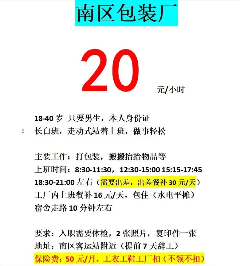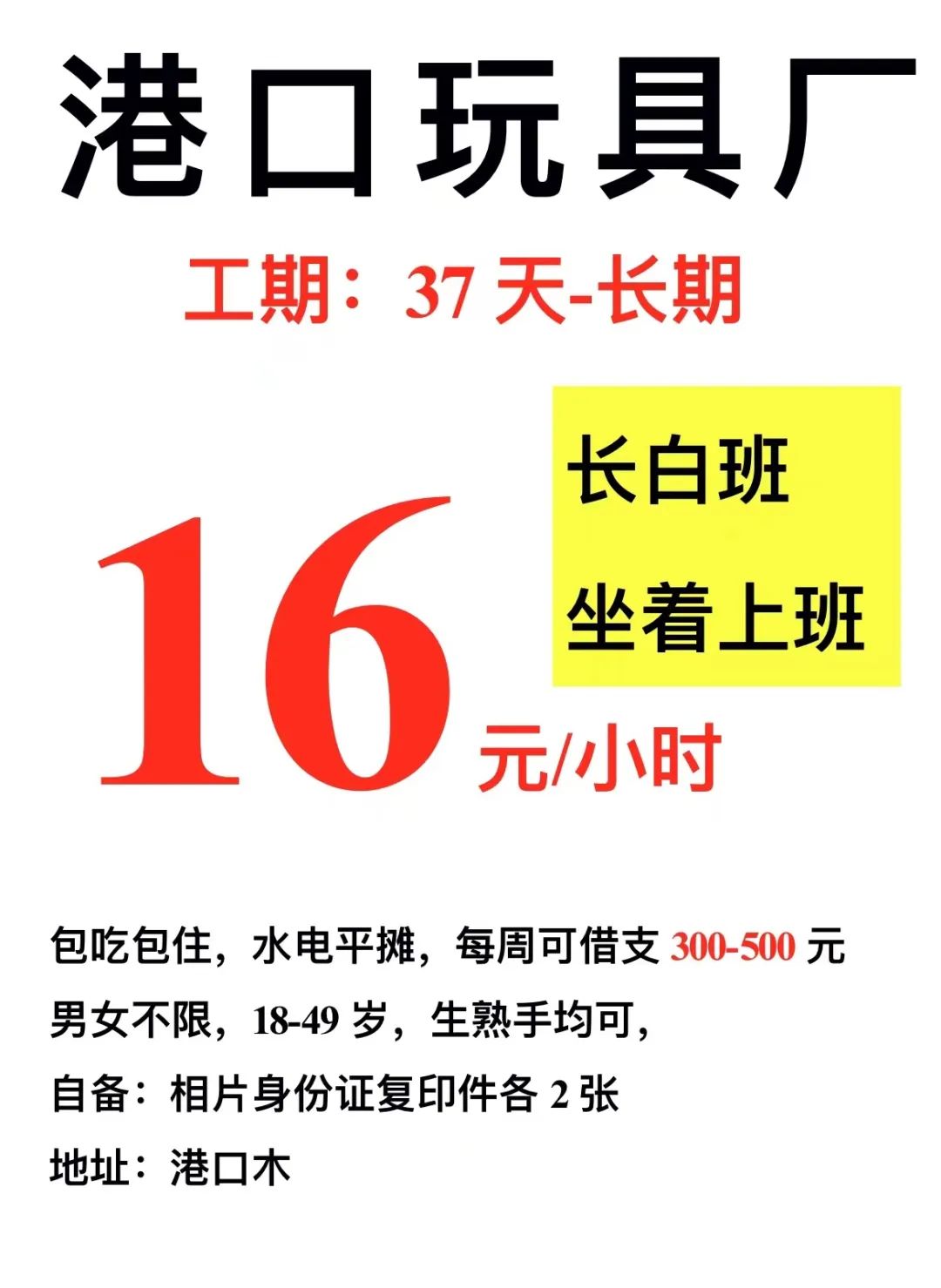 ️满16岁以上工作长白班部分两班倒轻松好做,工作简单轻松,男女不限,包吃住,可预支工资,待遇好,工资离职全部结清,需要带本人证件!