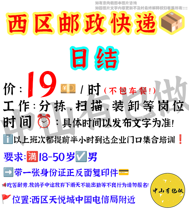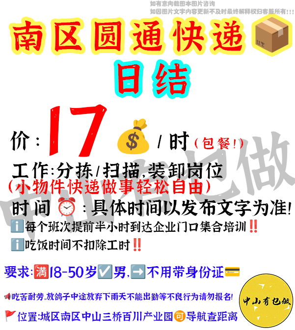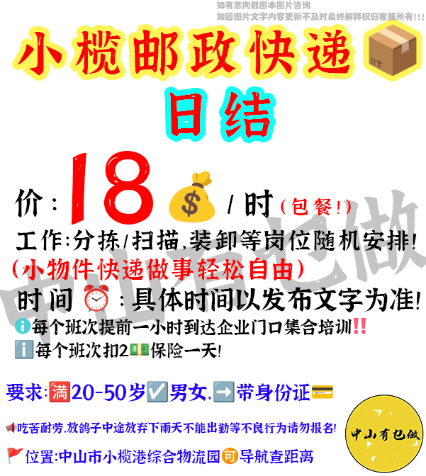 佛山广州电商快递📦👉24💵/时 包吃住!(每天中山小榄泰丰夜市街10:30免费包车出发)