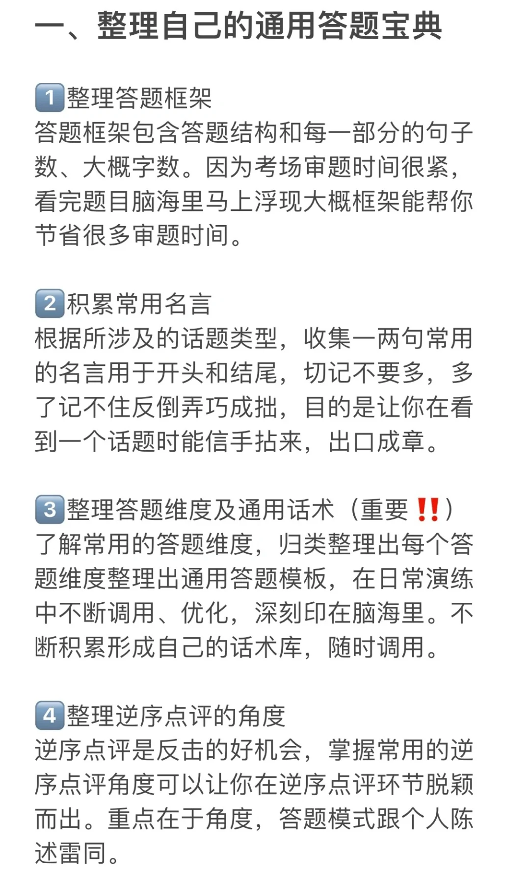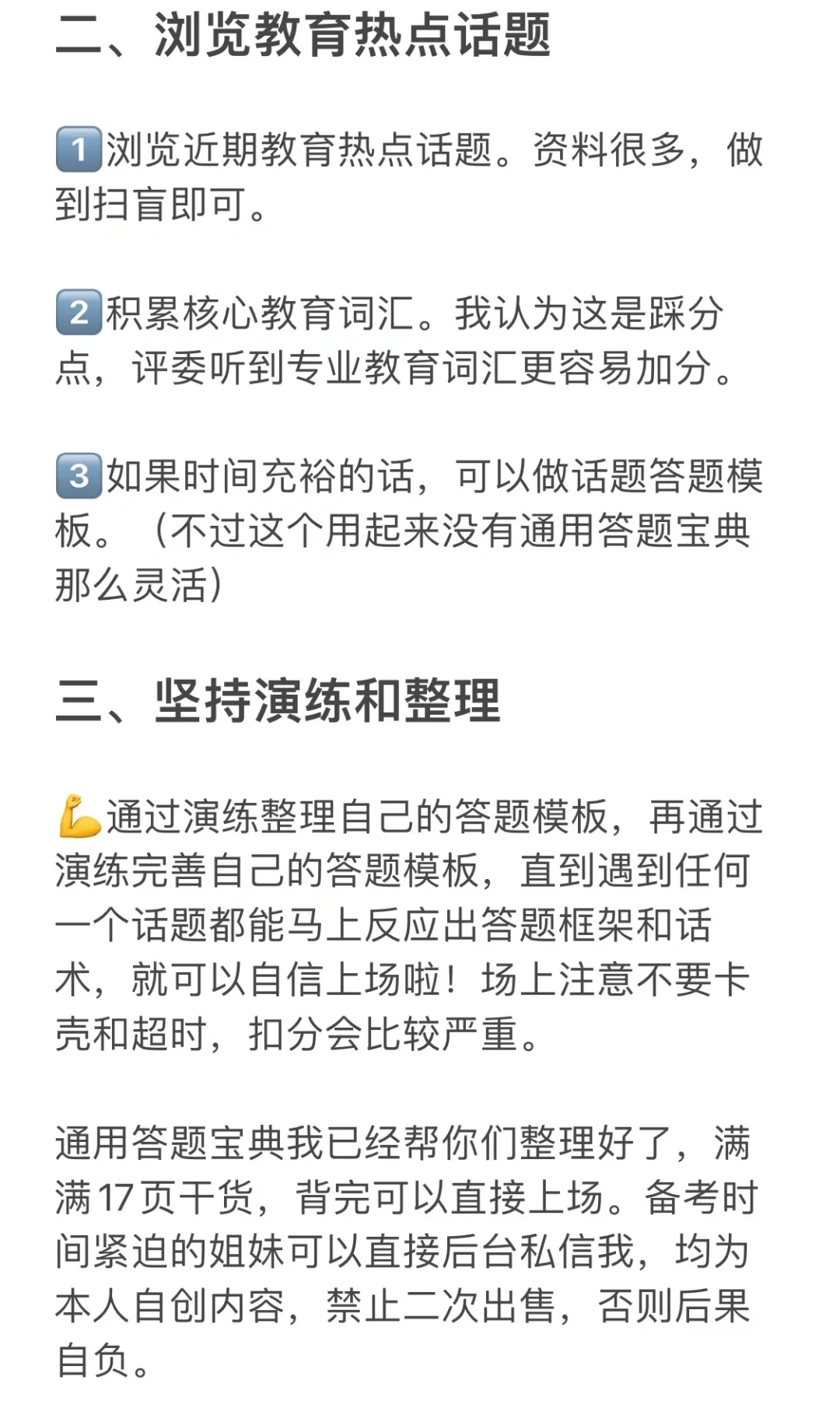 👌通用答题宝典我已经帮你们整理好了,满满17页干货,背完可以直接上场。备考时间紧迫的姐妹可以直接后台私信我,均为本人自创内容,禁止二次出售,否则后果自负。