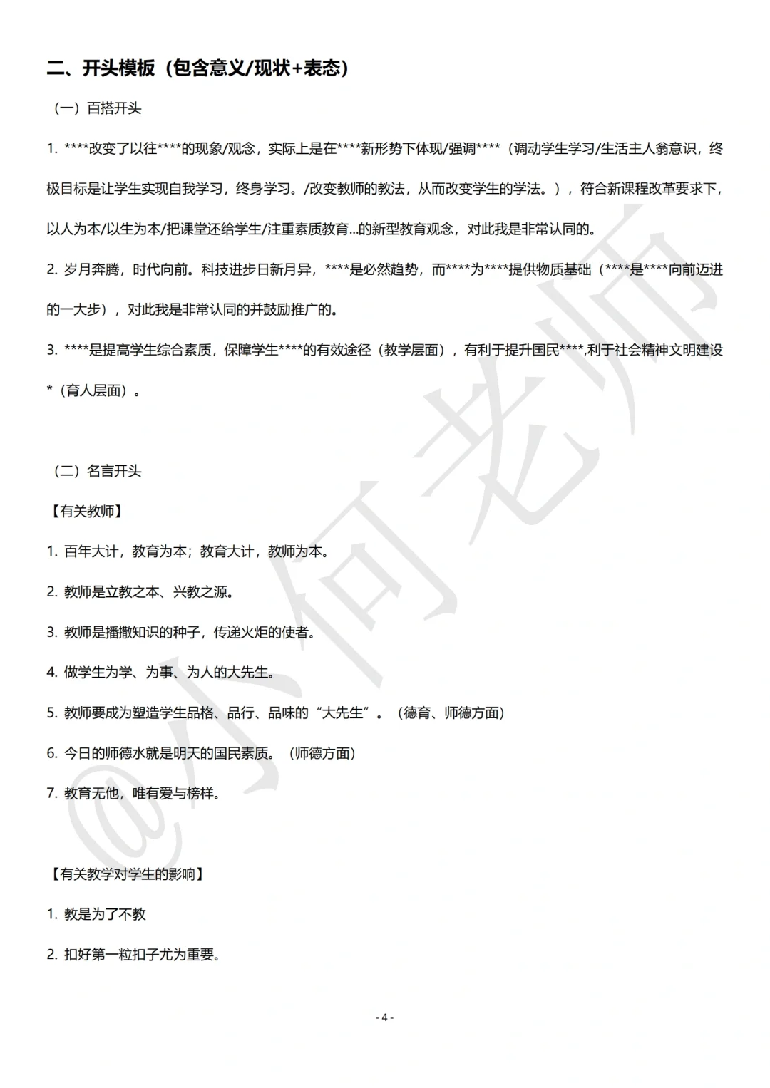 根据所涉及的话题类型,收集一两句常用的名言用于开头和结尾,切记不要多,多了记不住反倒弄巧成拙,目的是让你在看到一个话题时能信手拈来,出口成章。