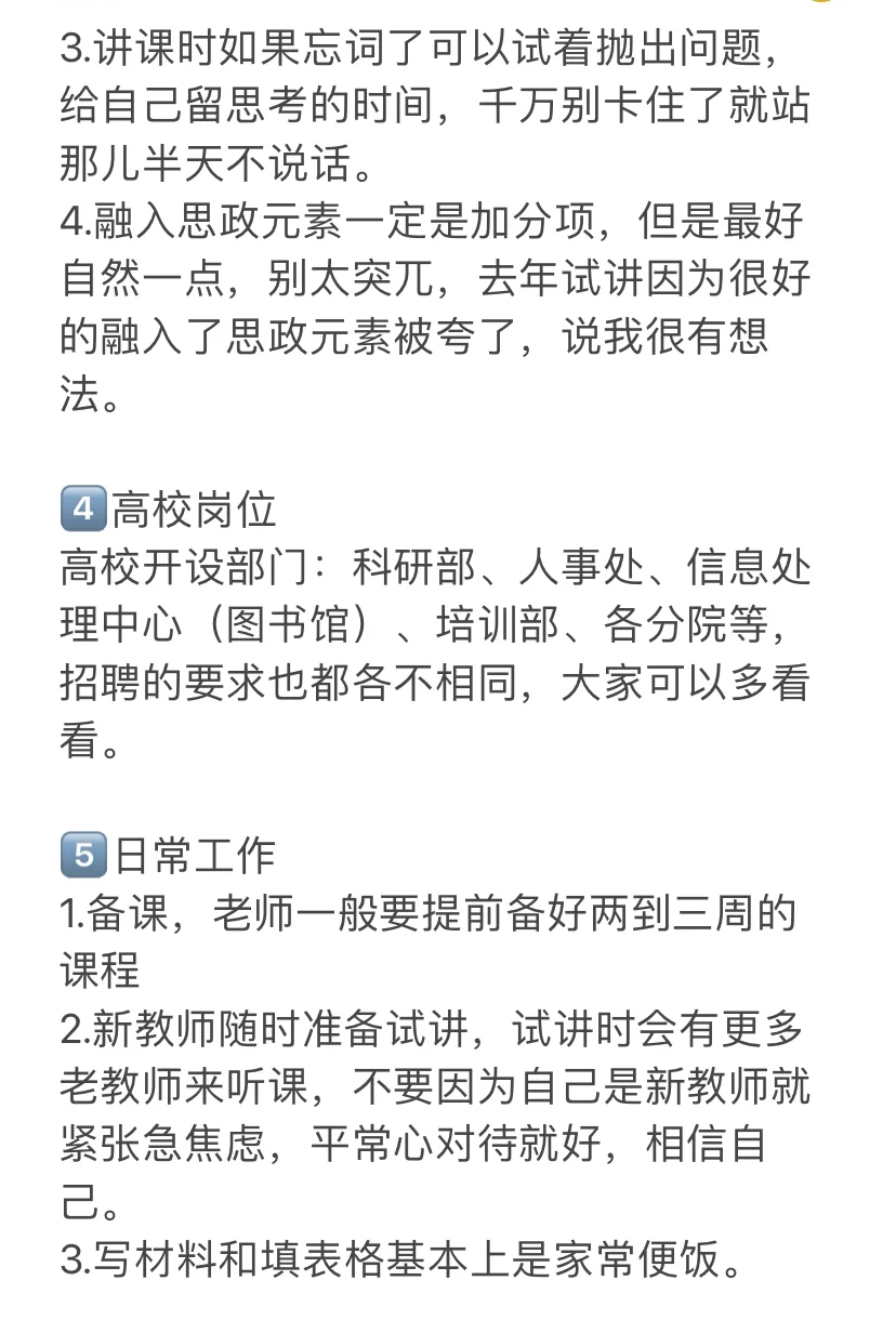 2.新教师随时准备试讲,试讲时会有更多老教师来听课,不要因为自己是新教师就紧张急焦虑,平常心对待就好,相信自己。