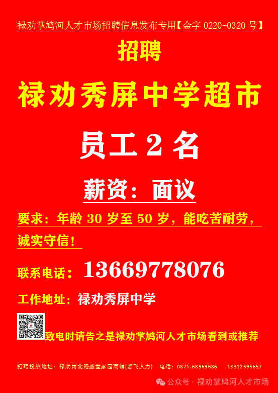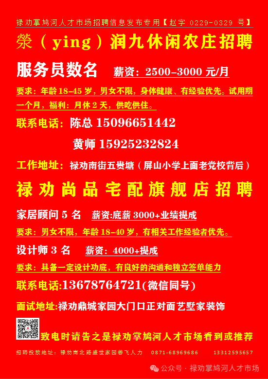 【禄劝招聘】禄劝掌鸠河人才市场,本地企业招聘岗位信息第0302期