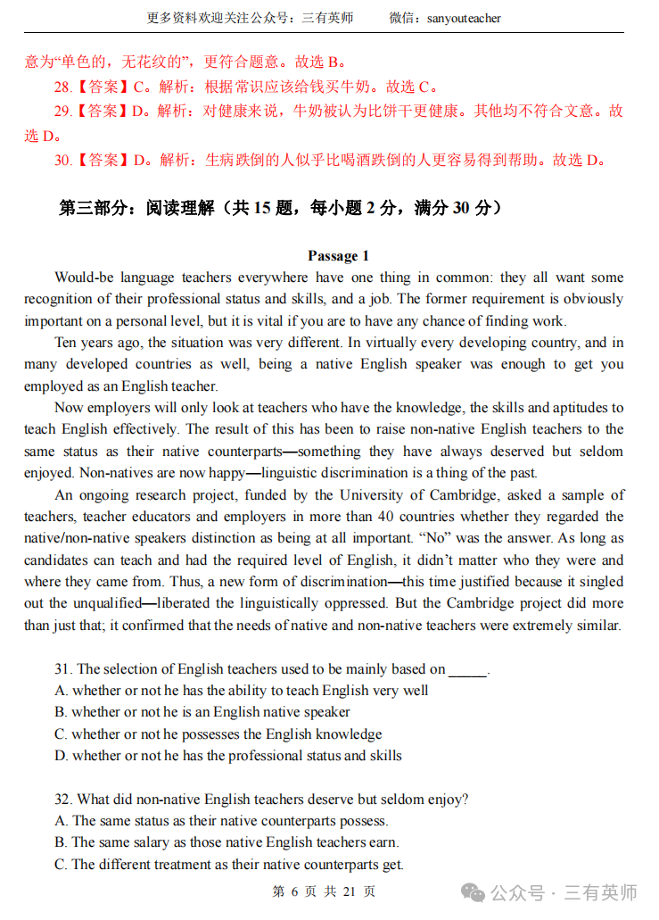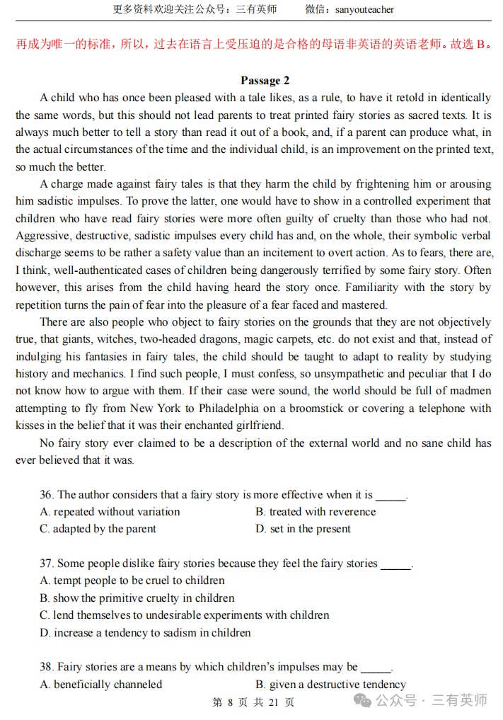 No. 2 浙江省英语教师招聘学科英语笔试模拟测试卷(二)-解析版
