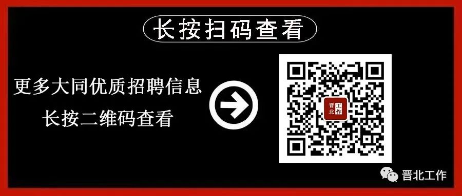 免责声明:本公众号刊登招聘信息,其最终解释权归招聘单位,如求职者对具体情况有疑问,请直接与招聘单位联系。转载该信息仅出于让求职者周知目的,如有侵权请告知删除点击“阅读原文”进山西求职群