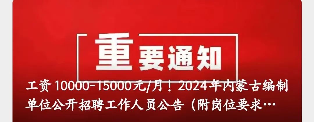 点击上方蓝字马上关注“赤峰市就业招聘公布平台”。本平台每天发布赤峰地区的校园和人才市场招聘会丨最新公务员招聘丨医院丨银行丨事业单位招聘丨教师招聘丨铁路招聘丨国企 | 私企等知名企业高薪招聘信息等!快来关注我们吧!