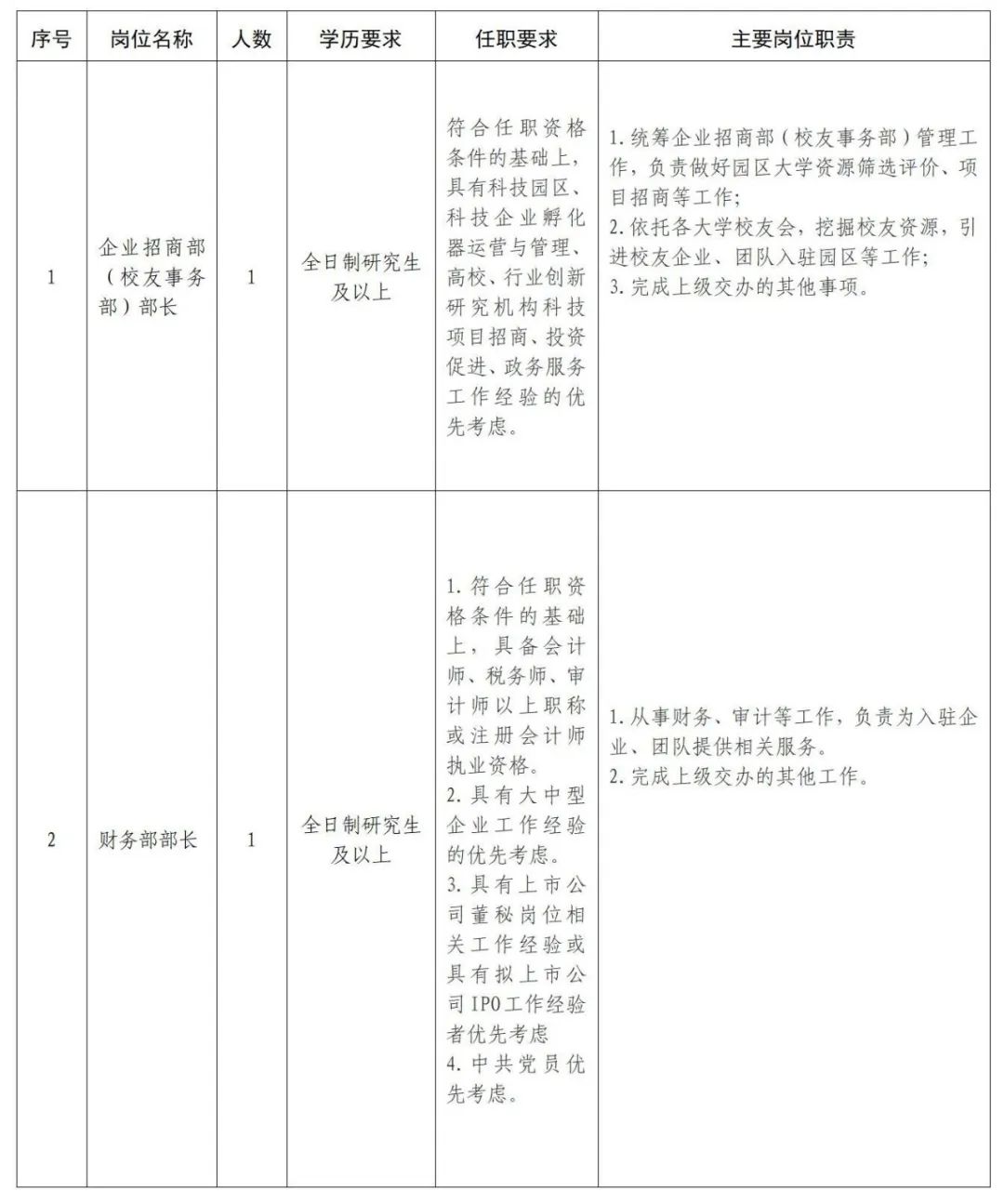 天津天开发展集团有限公司(以下简称天开集团)是天津市科技创新发展中心所属国有控股企业,是天开园的运营公司,以特色招商、专业投资、金融生态、载体运营、科技咨询等多方位服务为主业。为高水平开展天开园建设,提高园区经营管理水平,建设高素质、专业化经营管理团队,经研究,现公开选聘天开集团企业招商部(校友事务部)部长及财务部部长,公告如下: