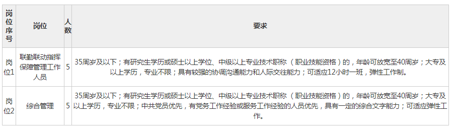 1、岗位名称: 联勤联动指挥保障管理工作人员 、综合管理