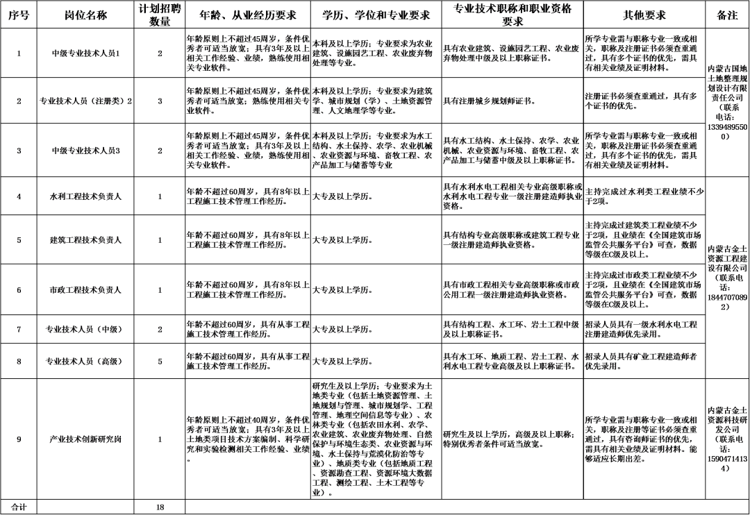 内蒙古土地资源收储投资(集团)有限公司(简称“内土投集团”)是经自治区人民政府批准设立的国有独资企业,是自治区唯一以土地类投资开发为主营业务的区属国有独资企业。集团立足内蒙古自治区土地资源禀赋,主要经营土地综合整治、投资与资产管理、规划设计管理、生态修复治理等业务,在服务和保障经济社会高质量发展、推动土地资源价值和综合利用效率提升、促进存量土地有效盘活利用等方面发挥着重要作用。根据经营发展需要,在前期委托内蒙古北方人事考试服务中心为下属出资企业招聘急需紧缺专业技术人员的基础上,继续开展常态化招聘。