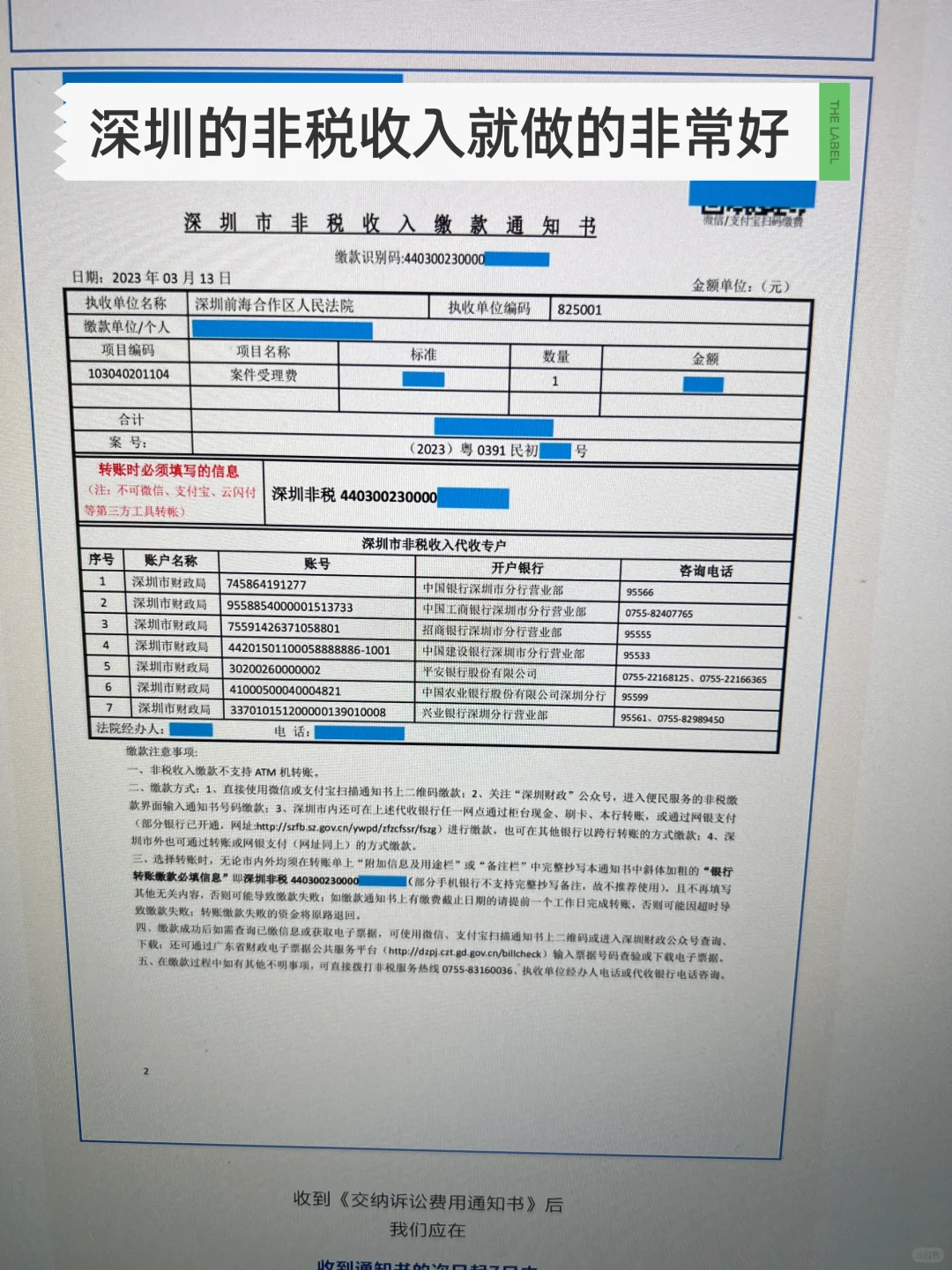 本来以为就是一个很简单转账工作,但银行工作人员帮我弄了将近50分钟。上诉费这一类属于非税收入,深圳ZF这边做事就非常人性化,给一个银行账户就可以转账了。但是湖南财政那边给的是一个统一缴款码,这个码银行不认的,我最后拿到中院的银行账户也不是官方提供,所以花了很长的时间核对信息。