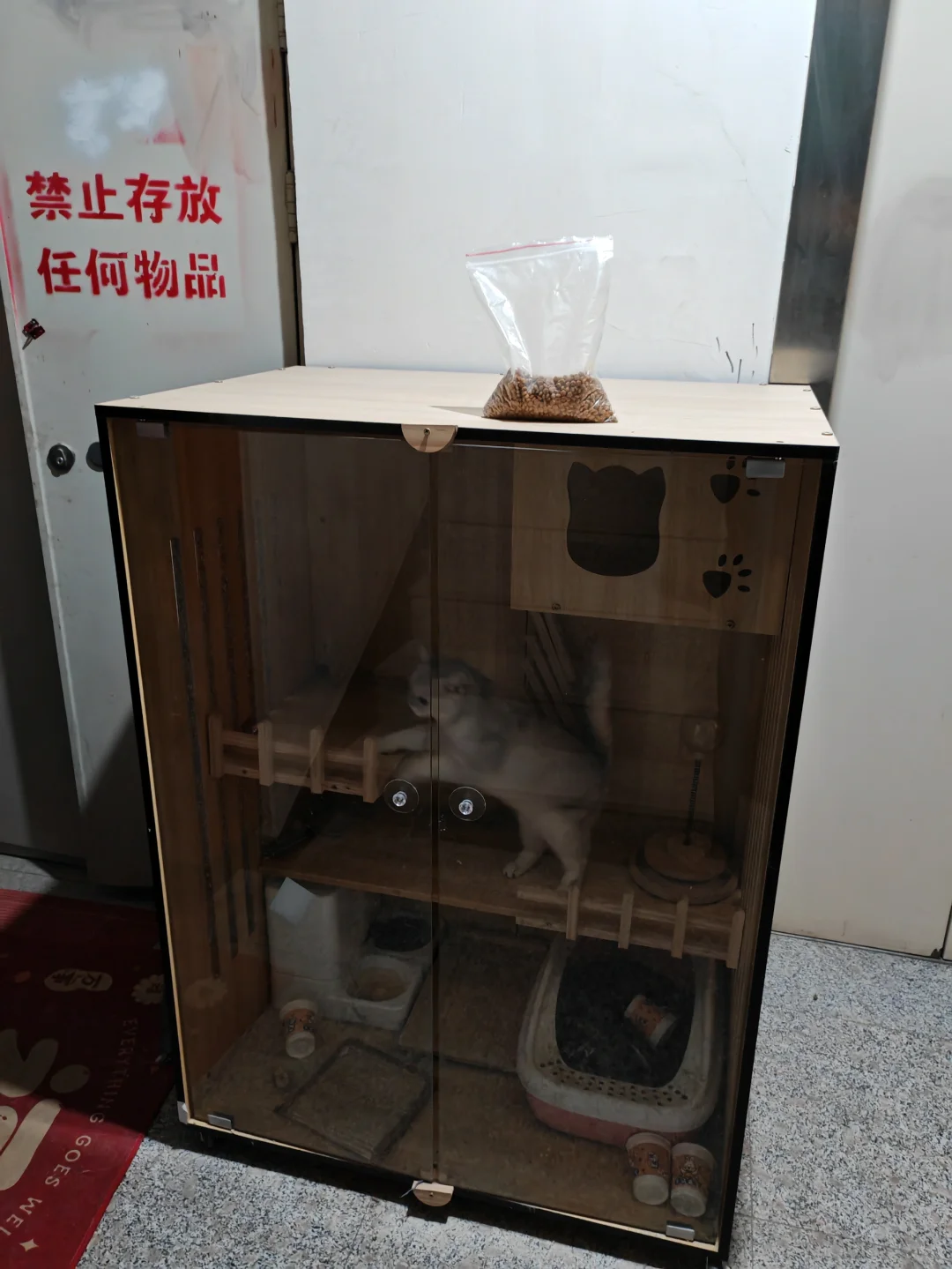 小猫被扔在过道,没人管,没人陪,猫砂盆也不清理,昨天看猫粮没了,水也没有了,每次路过,都陪她一会,很乖,不怕人,养宠物不就是陪伴吗,这样养有啥意义吗