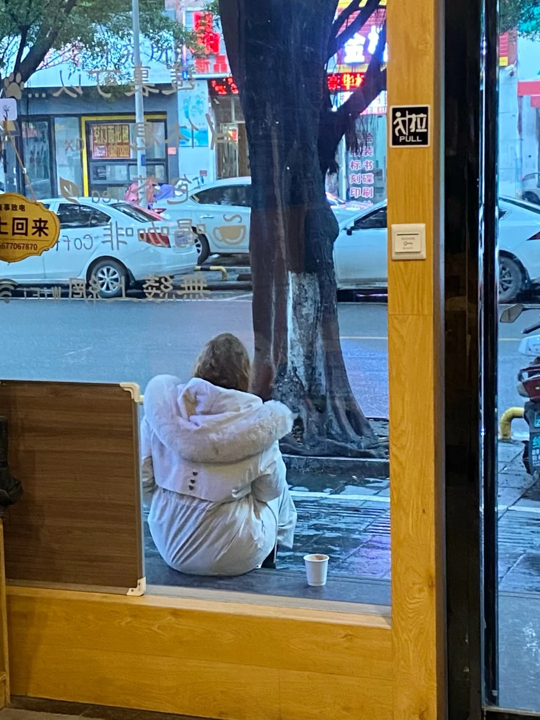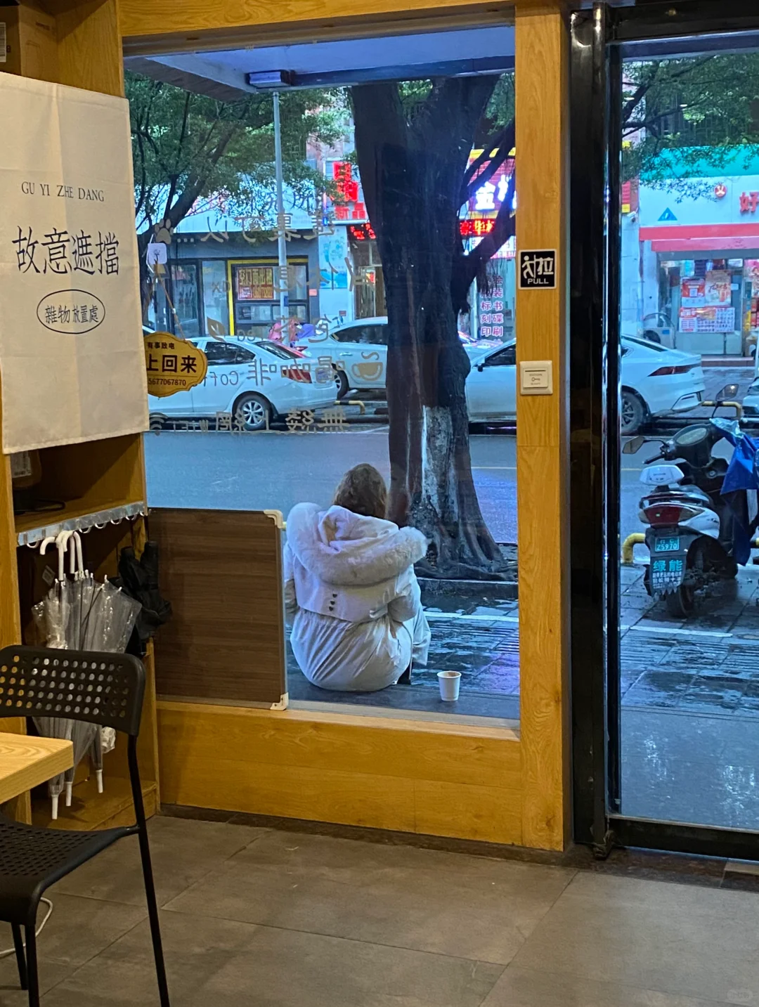 推荐了些地方,出门买了大衣,很满意,一屁股坐门前🚬,坐下去那一刻我就快疯了…下雨天、户外台阶、新衣服、白色!叠满…