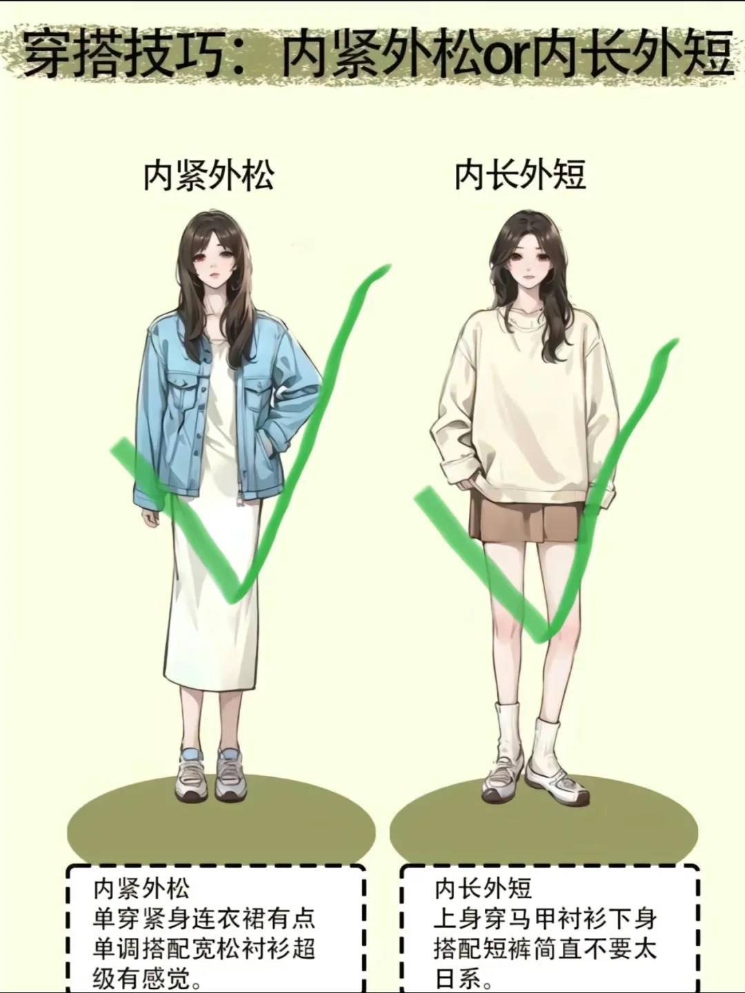女生必学的4️⃣条穿搭法则,不会就进来学! 1️⃣上紧下松 上紧下松的穿搭法则适合身材较瘦小的女生,可以选择宽松的上衣搭配紧身裤或裙子,这样能够展现出身材的纤细感,同时又不会显得过于臃肿。 2️⃣内长外短 内长外短的穿搭法则适合身材较矮小的女生,可以选择一件短款上衣搭配长裙或长裤,这样能够显得身材更加修长。同时,短款上衣可以选择稍微宽松的设计,而长裙或长裤则可以选择稍微宽松的设计,这样能够避免出现上下身过于臃肿的情况。 3️⃣内紧外松 内紧外松的穿搭法则适合身材较为丰满的女生,可以选择一件紧身的内搭搭配宽松的外套或裙子,这样能够展现出身材的曲线感,同时又不会显得过于臃肿。内搭可以选择一些比较贴身的款式,如T恤、衬衫等,而外套或裙子则可以选择一些比较宽松的设计。 4️⃣上短下长 上短下长的穿搭法则适合各种身材的女生,可以通过提高腰线来拉长下半身的比例,从而达到显高显瘦的效果。可以选择短款上衣搭配高腰裤或高腰裙,这样能够将腰线提高,同时又能够展现出下半身的曲线感。此外,上衣可以选择一些比较宽松的设计,而裤子或裙子则可以选择一些比较贴身的款式。#穿搭干货 #穿搭 #气质穿搭 #慵懒穿搭 #提升衣品 #新年新look #女生必看 #潮流关键词 #穿衣自由 #穿衣搭配#显瘦穿搭 #微胖女生穿搭 #大学生 #大学生穿搭 #ootd每日穿搭 #小红书 #小红书涨粉 #小红书助手 #小红书成长笔记 #小红书穿搭 #热点小红书 #源邦皮草 @小红书创作助手 @潮流薯 @小红书成长笔记 @小红书体验站 @小红书REDesign @薯店长 @小红书创作学院 @小红书UED |