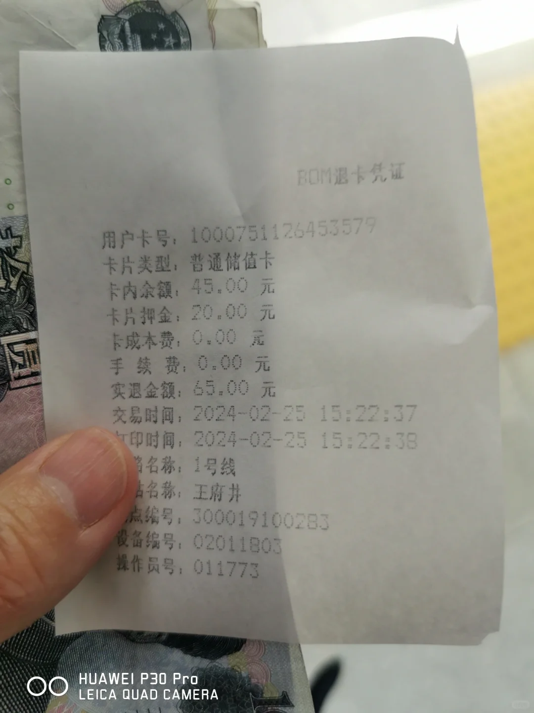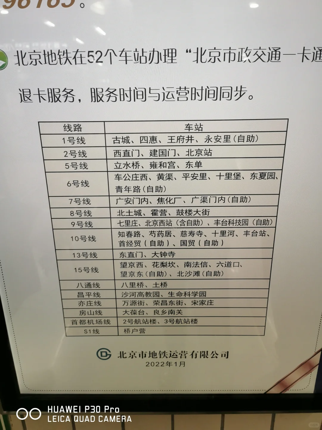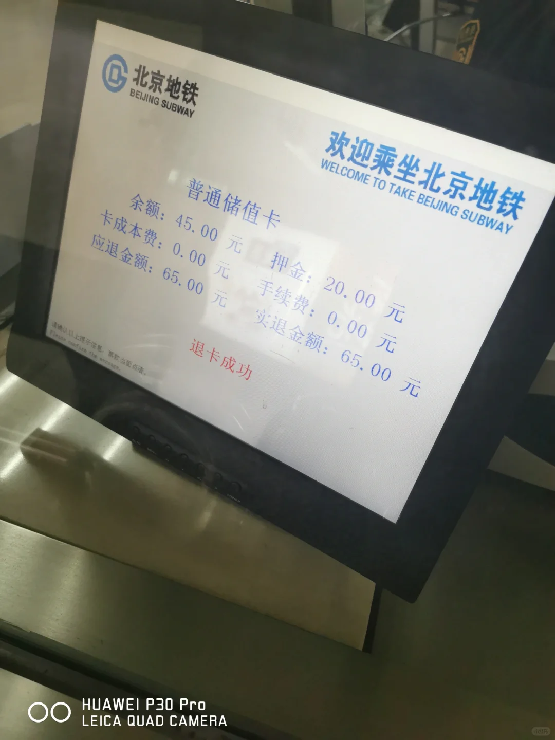 在家收拾东西 是不是就能看到它 今天终于想着把它放到包里 在王府井坐地铁时 看到服务中心 正好可以办理 没想到退了65元钱呢 全北京52个地铁站可以办理 等几秒钟就可以 非常便利