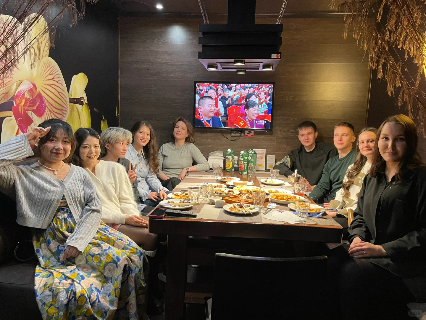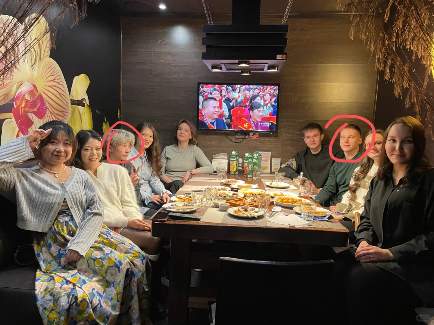 朋友叫了我们的游泳教练跟我们一起吃年夜饭并且拍了大合照