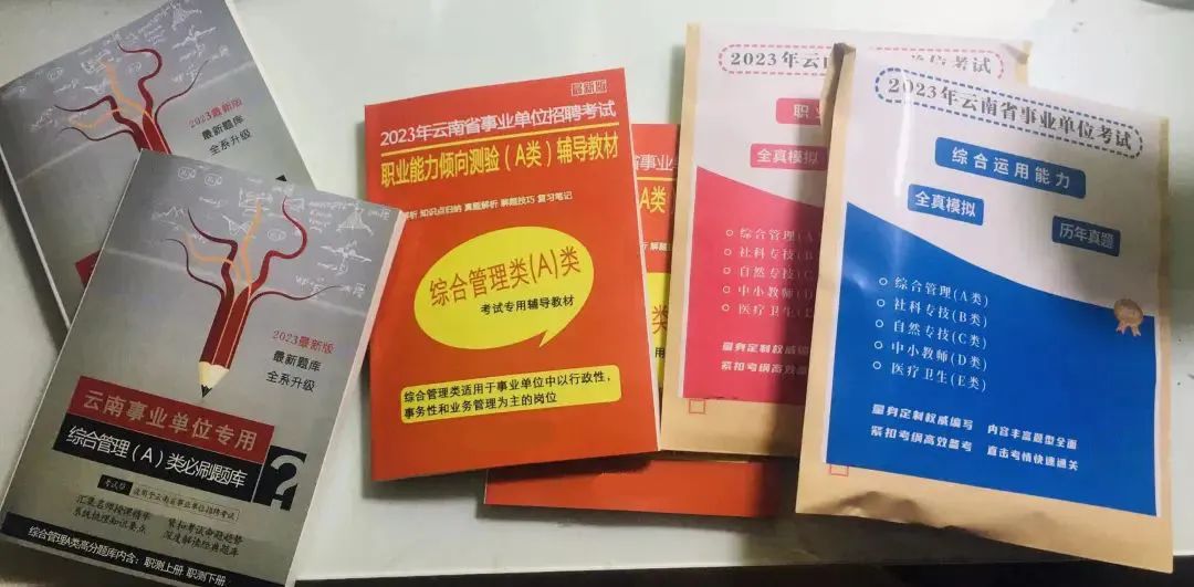 2023年云南省事业单位ABCDE类笔试全套资料五本书:《职业能力测验辅导教材》+《综合应用能力辅导教材》》+《刷题库1001题》+《时政汇编》+《往年真题及考前冲刺预测试卷》