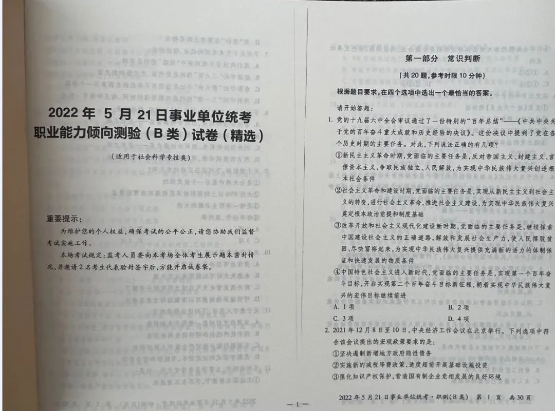 事业单位联考将公共科目笔试分为五类,分别为【A:综合管理类、B:社会科学专技类、C:自然科学专技类、D:中小学教师类、E:医疗卫生类】,统一考核《职业能力倾向测验》和《综合应用能力》两科。而根据类型的不同,尽管同属一科,内容也会有所区别。