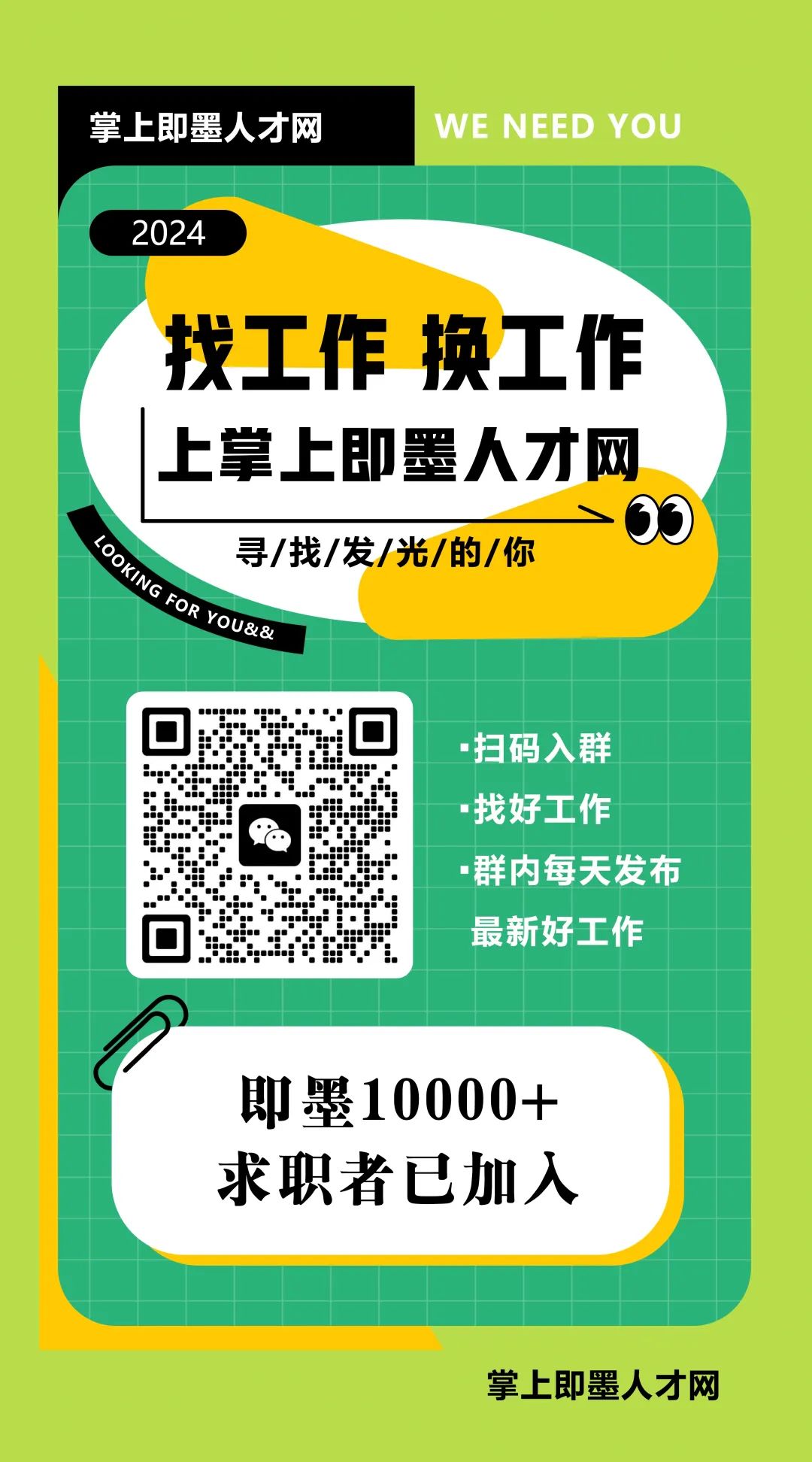点击上方【蓝字】关注掌上即墨人才网 即墨大型招聘会 2024即墨服装市场大型招聘会 【服装导购 穿板...专场】 地点:即墨服装市场B区一楼大厅(室内) 时间:3月10日13时-16时30分 报名电话:18006487295(微信) 长按微信二维码进新春求职群 关注掌上即墨人才网 找工作投简历,更便捷! 如何申请职位? 1、识别二维码,进入招聘界面 2、点击识别的岗位/公司名称,进行申请职位 3、还可以点击【电话】按钮,直接与企业联系 今日优质好岗位推荐! 今天,小编给大家汇总了一波急招岗位 快来看看哪些企业正在招人~ 点击🔗查看详情即可查看职位详情哦 ![]() 雕刻机操机师傅 ![]() 8000-10000元/月 青岛嘉博跃模具机械有限公司 山东省青岛市即墨区通济街道国四国五汽车维修站君鑫达包装 数控操作工 ![]() 墨城中心幼儿园招聘帮厨 ![]() 2200-2600元/月 社保|节日福利|加班补助|餐补|交通补贴 青岛福盛人力资源服务有限公司 振华街87号 墨城中心幼儿园招聘帮厨两名 要求:身体健康,无犯罪记录,有伙房工作经历的优先。 工作时间:7:00-15:30 双休 薪资待遇:2200元 ![]() 底薪4000+提成招销售 ![]() 4000-20000元/月 节日福利|年假|加班补助|餐补|包住|年终奖|其他补贴|话补|交通补贴|其他补助 青岛德佑房产有限公司 青岛市即墨市淮涉河一路绿城岘山花城 如果你现在还是没有稳定的工作和收入,可以来我们德佑贝壳找房公司尝试一下,来实现你月入过万的梦想。年薪十万绝对没问题。请相信我,一定能实现自己的价值观。公司一对一培训,有师傅带,轻轻松松入手。 ![]() 月薪4500+招导购员 ![]() 4000-5000元/月 节日福利|年假|加班补助|其他补贴|其他补助 即墨区衣世界服装超市 青岛市即墨市鹤山路599号佳乐家西侧100米 底薪3000元+提成+公休2天(月工资4000-5000元),有销售经验,人有礼貌,有团队精神,优先录用。 ![]() 五险一金招聘普工班组长 ![]() 5000-6000元/月 医保|社保|住房公积金|节日福利|加班补助|餐补|包吃|五险一金 青岛汇金源科技信息有限公司 青岛市即墨市中国青岛汽车产业新城解放三路与204国道交叉口南100米路西 1、有制造业或者汽车行业班组长管理经验 2、协助车间主任管理车间,带领班组进行生产 3、有工作餐 4、工作时间8-17:00 5、五险一金 ![]() 月薪5000+招车间普工(接受无经验) ![]() 4000-5500元/月 节日福利|年假|加班补助|年终奖|婚假|房补|包吃 青岛即墨京信电子有限公司 海尔路与长江二路交叉口西150米 操作工 (简单易学)站立工作。 1.公司免费提供工作餐。 2.车间空调开放 ,每月根据工作表现评定等级奖励金,同时加班费、特勤费也相应提高。 3.法定节假日带薪休假,综合工资4000-5500左右。 ![]() 印刷制版厂设计制作人员二名 ![]() 3000-7000元/月 五险 青岛浩恩来辅料包装印刷有限公司 即墨 小李村 高家庄北 制作人员 2名 (制版厂干过优先) 长期稳定的都交社保 月休2天 年龄20-40岁 老板人好事少 其余可以详谈 ![]() 拼多多上门取件员,月薪10000左右 ![]() 8000-15000元/月 节日福利|包住 青岛迅一供应商有限公司 清华园小区南侧 拼多多退货订单上门取件 早8点开始 6点半结束!按单提成 多劳多得 可以日结 每月25号准时开支 ![]() 区域经理(综合金融银行业务)月薪8000左右 ![]() 3500-12000元/月 医保|社保|节日福利|年假|年终奖|婚假|其他补贴|交通补贴 中国人寿保险股份有限公司即墨支公司 青岛市即墨市蓝鳌路672号 福利待遇如下: 1、月均收入4000—15000(固定底薪+绩效工资) 2、完善员工保障计划(享有医疗、养老、意外伤害)等商业保险保障,公司定期组织技能培训,团建活动丰富 3、工作时间:每周休息一天半,享有国家法定节假日。 4、我们有丰富的客户资源,无需自己寻找客户。 ![]() 门卫 ![]() 3000-3100元/月 青岛锦泰盛机械设备有限公司 普东 没啥事,就开门关门 ![]() 旅游客服 ![]() 5000-7000元/月 节日福利|年假|婚假|话补|五险一金 青岛飞鸟国际旅行社有限公司 青岛市即墨市青岛市即墨区德馨大厦12B-07 岗位职责: 1、熟悉并了解负责的产品详情,通过电话和文字的形式为客人解答疑问。 2、更新产品信息,调整产品状态,跟进处理订单。 3、了解用户需求,提高服务满意度 4、及时反馈市场产品相关信息。 5、负责处理客人反馈问题,处理异常订单。 6、负责统计差评,合理回复处理差评。 7、完成上级安排的其他工作任务。 任职要求: 1、统招大专及以上学历。 2、熟练办公软件,打字熟练。 3、普通话标准、口齿清晰、语言表达条理...... ![]() 缝纫工 ![]() 4000-8000元/月 青岛奥薇姿纺织有限公司 青岛市即墨市北安街道辛八路9号 至少会两种机器,有服装相关工作经验,能够独立完成成衣者优先考虑,认真负责。 ![]() 服装销售业务员 ![]() 5000-8000元/月 加班补助|年终奖|其他补贴|五险 即墨格度优品商行 流浩河二路313号 1.能开拓销售渠道,积累客户资源,促成订单 2.负责对销售数据分析、跟踪、评估、总结,优化营销手段。 3.及时完成领导的销售目标。 任职要求: 1.两年以上服装行业销售经验,熟悉服装行业,做过服装推广。 2.具备较强的销售意识以及客户公关能力。 3.有强烈的自我管理和时间管理能力。 ![]() 月薪6000+(五险.可学徒)招吹膜工 ![]() 5000-8000元/月 医保|社保|住房公积金|节日福利|年假|加班补助|餐补|包住|年终奖|婚假|其他补贴|话补|交通补贴|房补|包吃 青岛宝源制膜彩印有限公司 青岛市