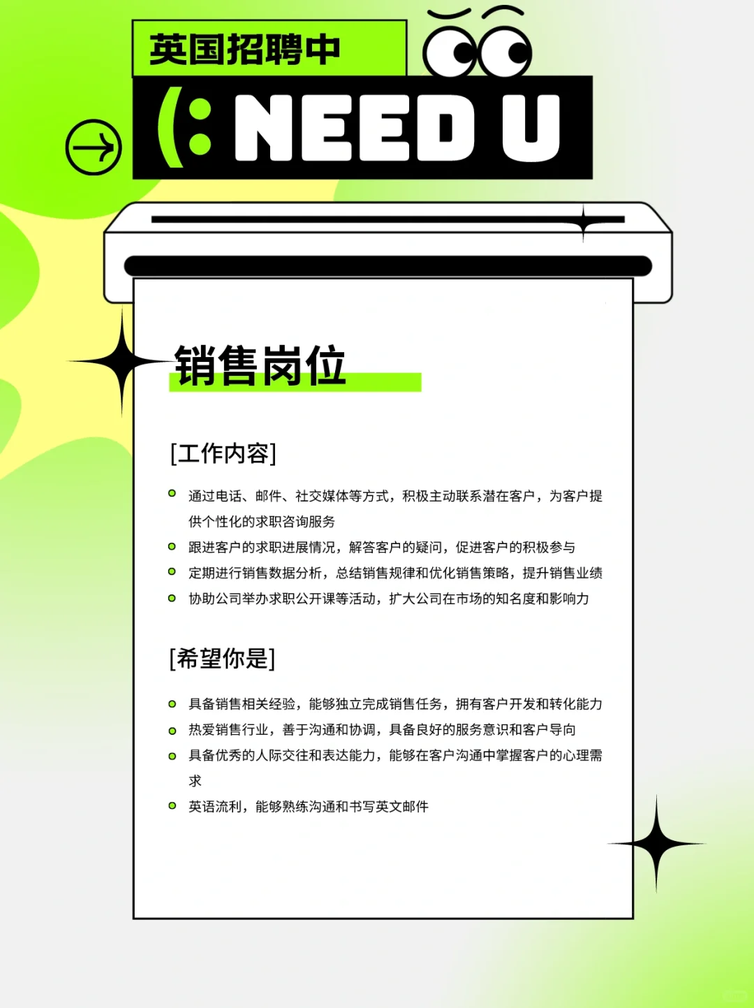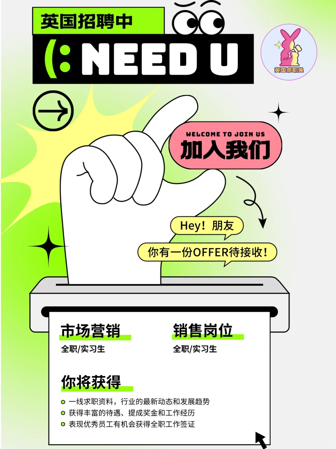 英国招聘中🇬🇧来闯出自己的小天地吧🫵