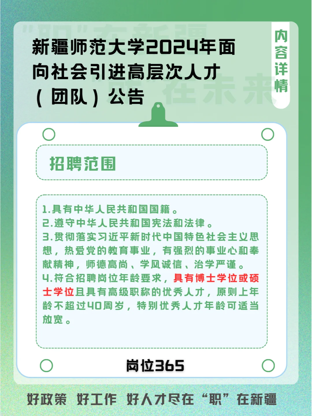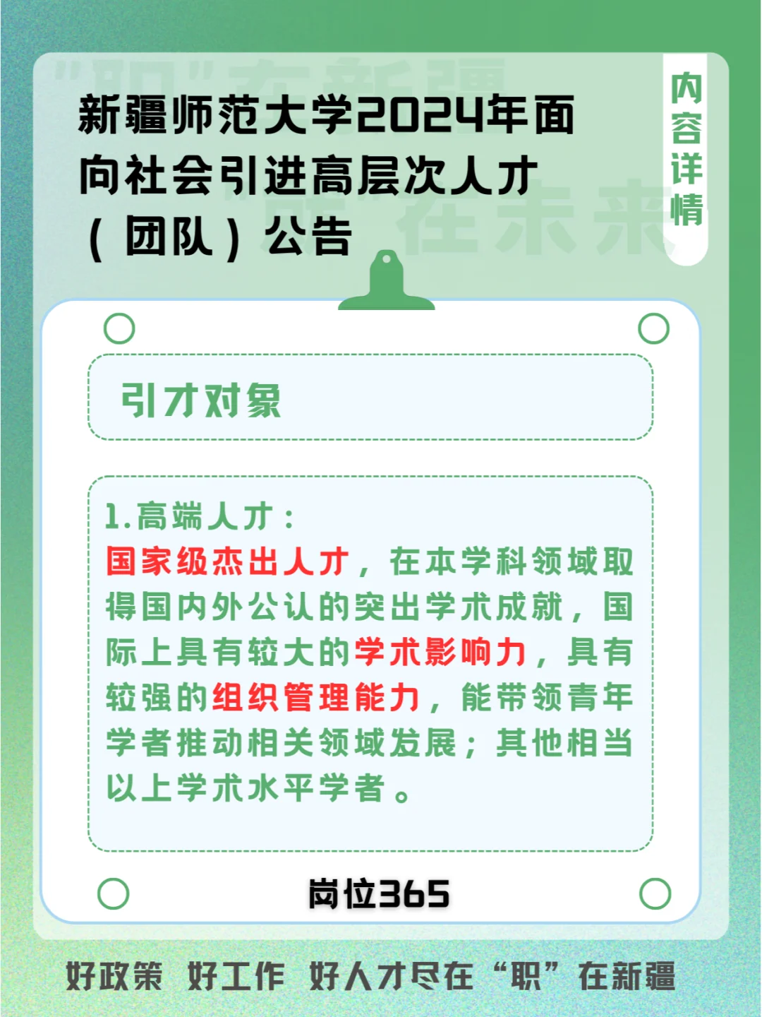 ❗️❗️❗️新疆师范大学2024年面向社会引进高层次人才(团队)公告正式发布!!!