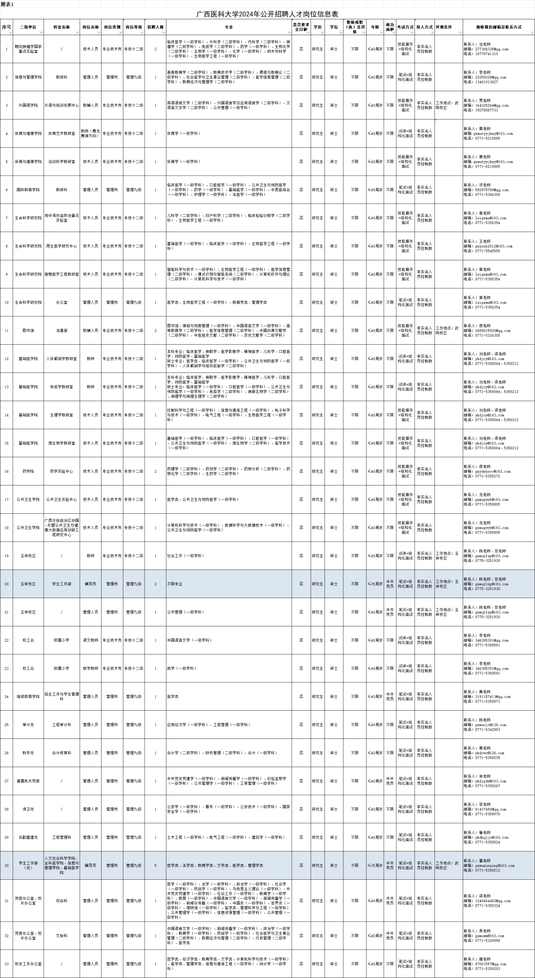 1.广西医科大学2024年公开招聘人才岗位信息表