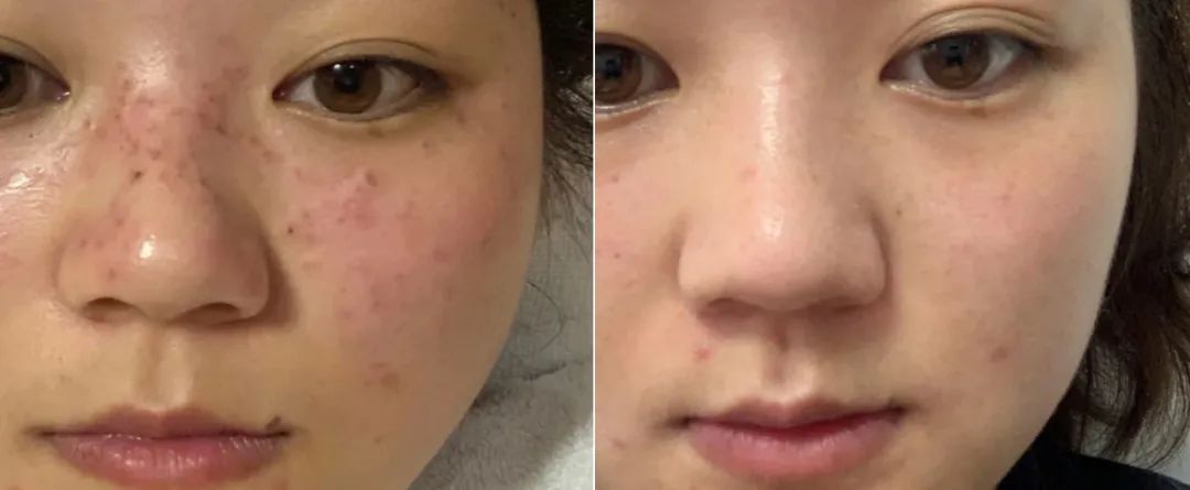 ▲左图医美后当天,右图是使用赫莲娜后的隔天