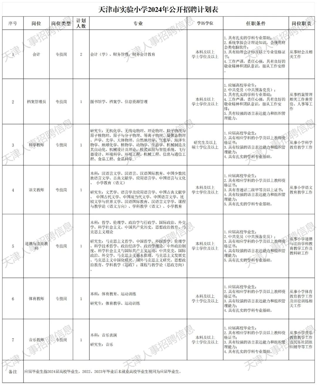 (9)招聘岗位所需的其他资格条件,具体参照《天津市实验小学2024年公开招聘计划表》。