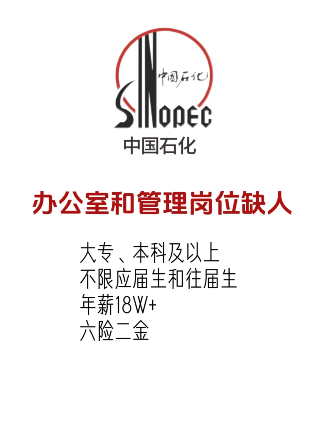 >中国石化文职类岗位限时回归!抓紧投!