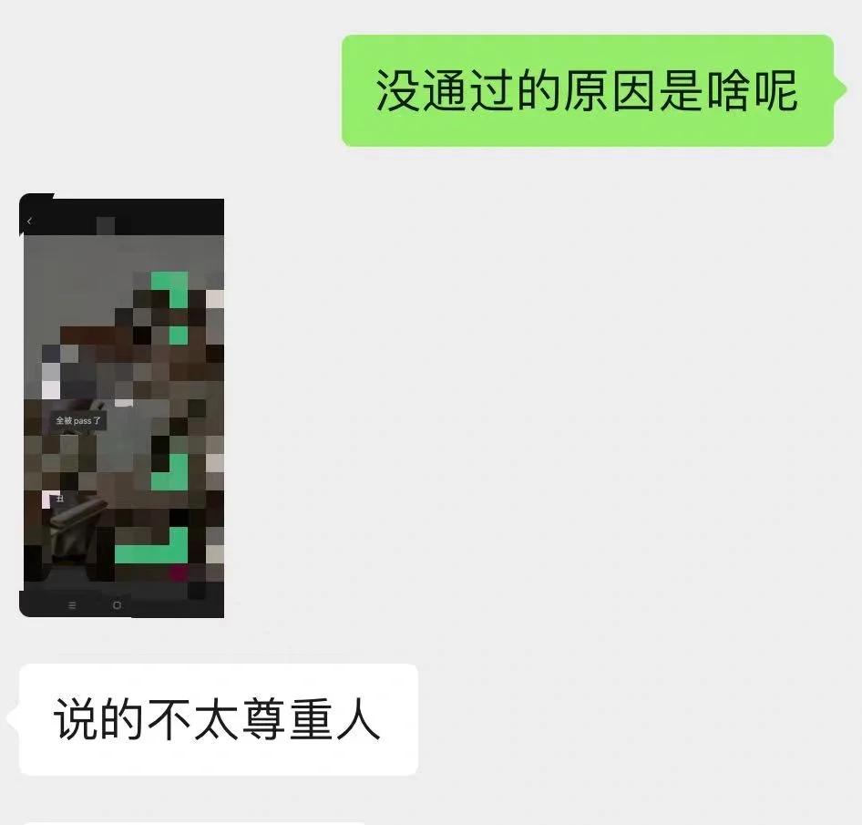 四个人一起面试,得到人事统一的评价:丑,然后都被pass。