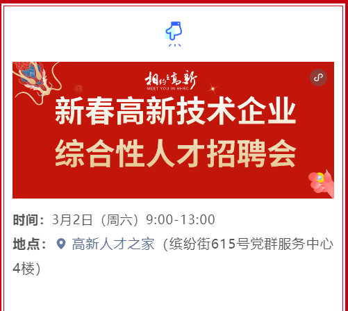 >招聘讯息|本周六高新区(滨江)新春招聘会1900+热岗来袭!