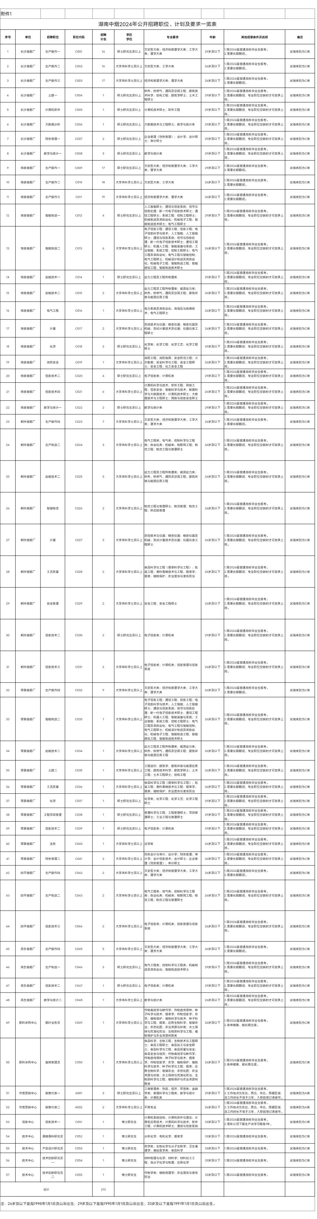 湖南中烟工业有限责任公司2024年公开招聘公告
